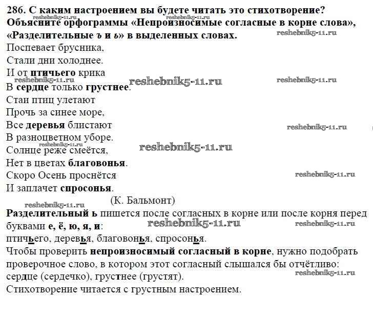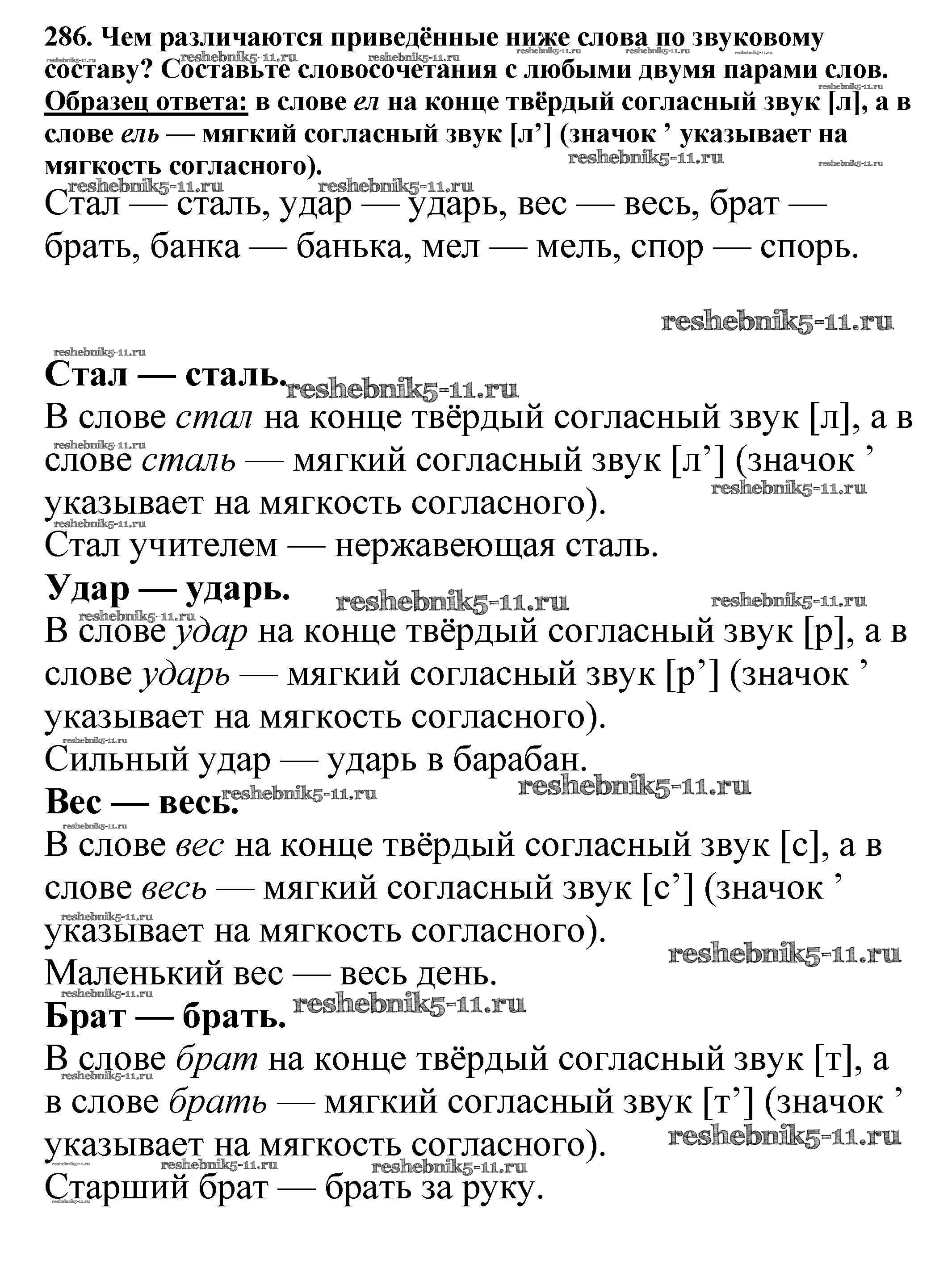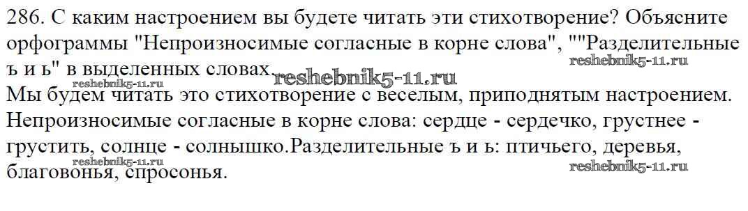 Готовая домашняя работа с ответами по Русскому языку за 5 класс Баранов, Ладыженская, Тростенцова, Кулибаба, Григорян Учебник Часть 1, 2 Просвещение 2016 ФГОС - Часть 1. Упражнения 286