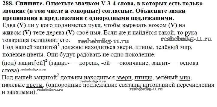 Русский язык за 5 класс Баранов Учебник Просвещение часть 1. упражнение 288