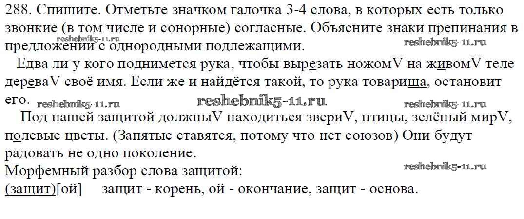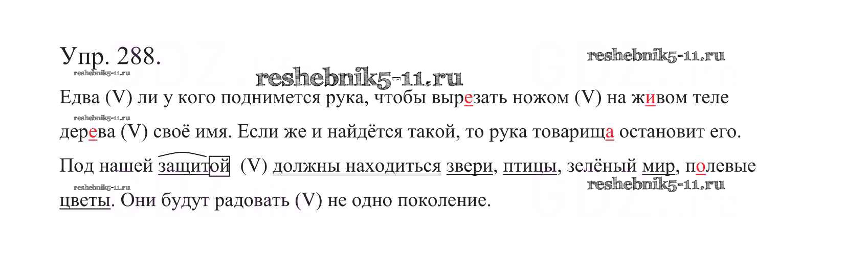 Готовая домашняя работа с ответами по Русскому языку за 5 класс Баранов, Ладыженская, Тростенцова, Кулибаба, Григорян Учебник Часть 1, 2 Просвещение 2016 ФГОС - Часть 1. Упражнения 288