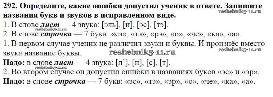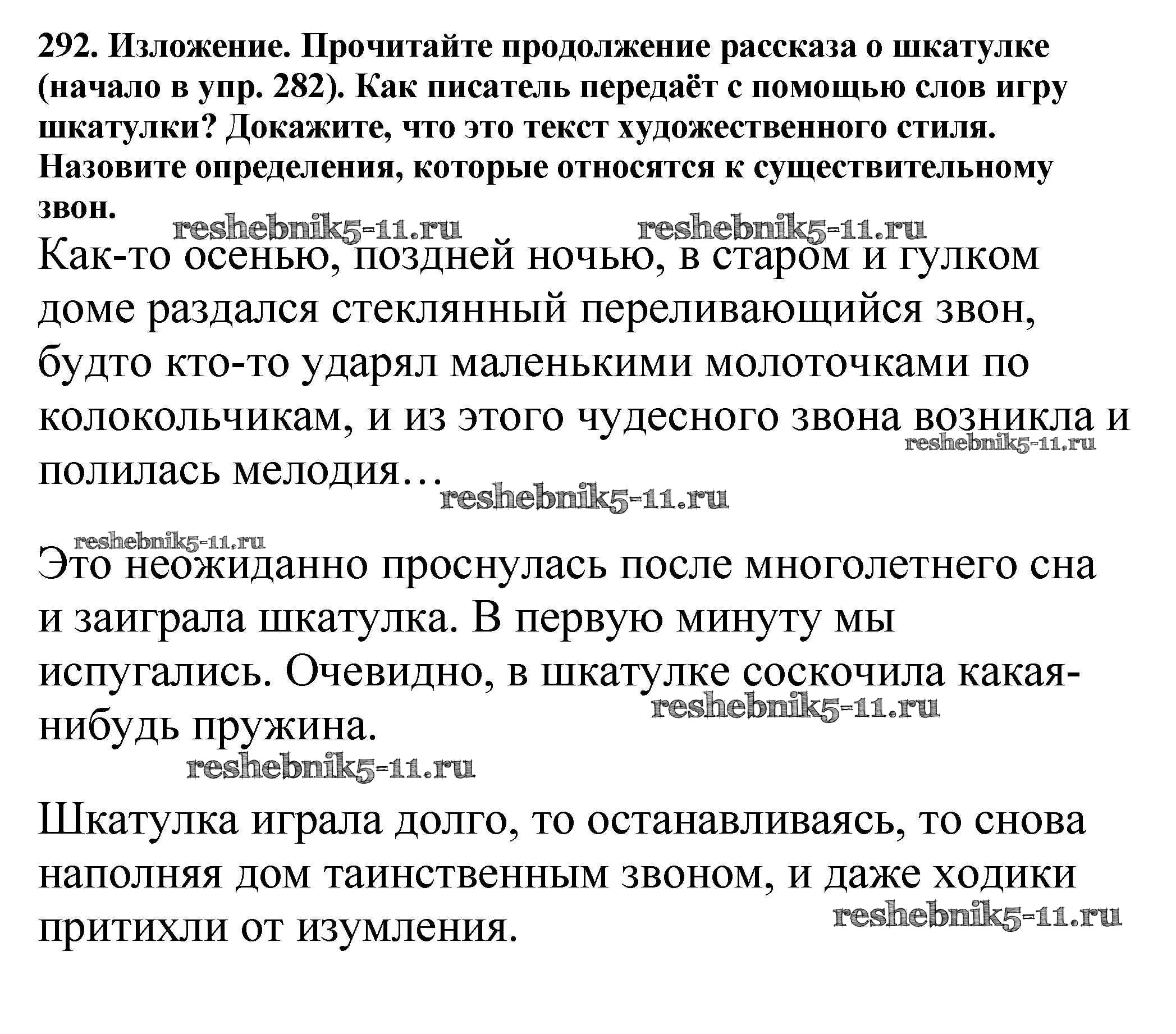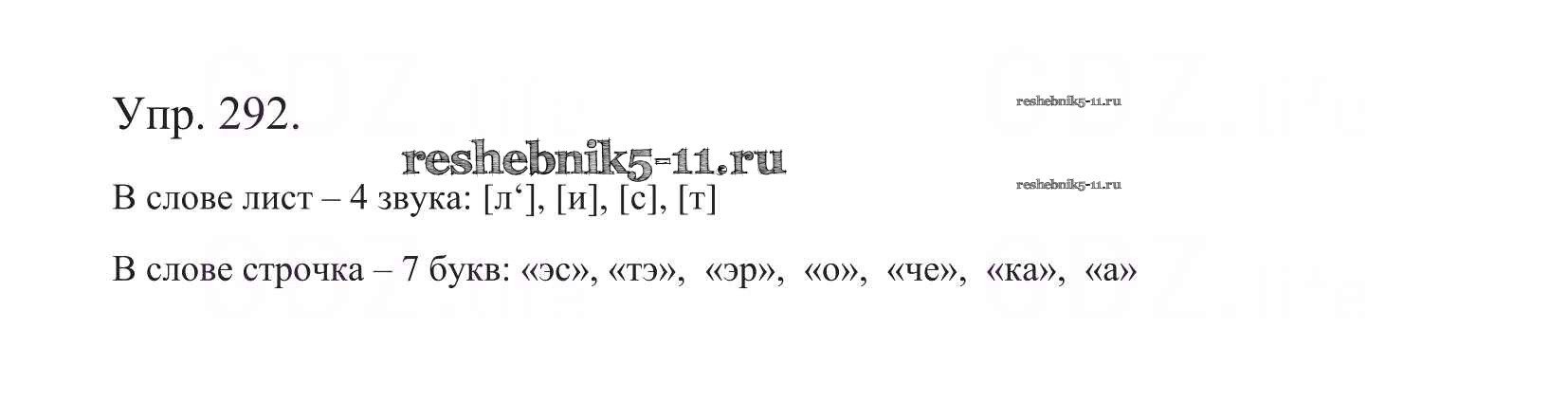 Готовая домашняя работа с ответами по Русскому языку за 5 класс Баранов, Ладыженская, Тростенцова, Кулибаба, Григорян Учебник Часть 1, 2 Просвещение 2016 ФГОС - Часть 1. Упражнения 292