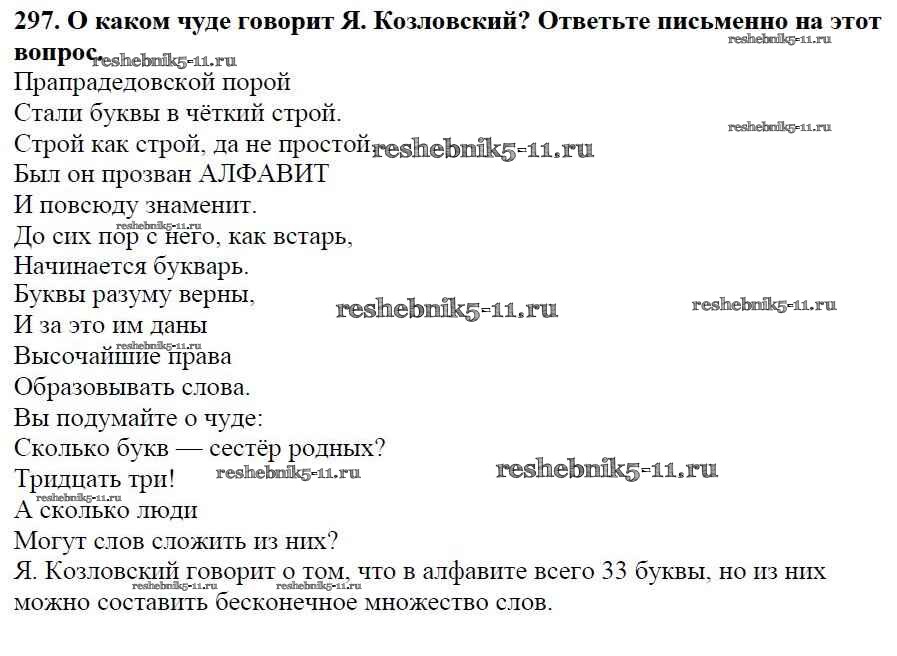 Готовая домашняя работа с ответами по Русскому языку за 5 класс Баранов, Ладыженская, Тростенцова, Кулибаба, Григорян Учебник Часть 1, 2 Просвещение 2016 ФГОС - Часть 1. Упражнения 297