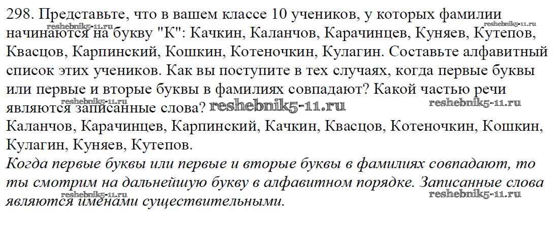 Готовая домашняя работа с ответами по Русскому языку за 5 класс Баранов, Ладыженская, Тростенцова, Кулибаба, Григорян Учебник Часть 1, 2 Просвещение 2016 ФГОС - Часть 1. Упражнения 298