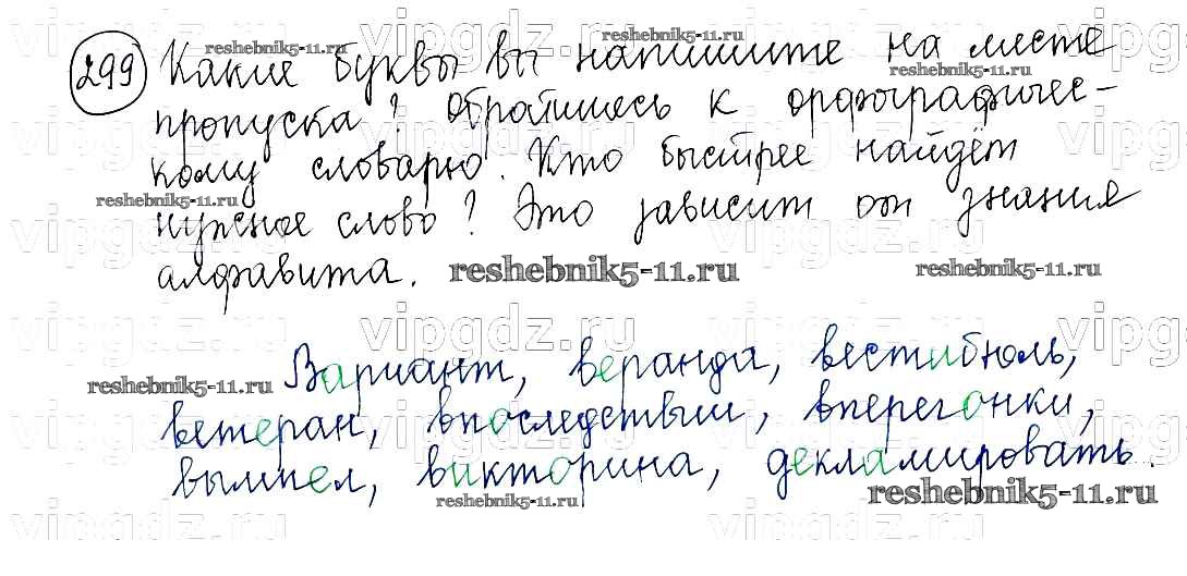 Готовая домашняя работа с ответами по Русскому языку за 5 класс Баранов, Ладыженская, Тростенцова, Кулибаба, Григорян Учебник Часть 1, 2 Просвещение 2016 ФГОС - Часть 1. Упражнения 299