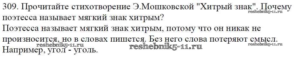 Готовая домашняя работа с ответами по Русскому языку за 5 класс Баранов, Ладыженская, Тростенцова, Кулибаба, Григорян Учебник Часть 1, 2 Просвещение 2016 ФГОС - Часть 1. Упражнения 309