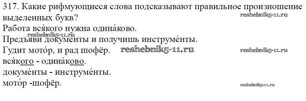 Готовая домашняя работа с ответами по Русскому языку за 5 класс Баранов, Ладыженская, Тростенцова, Кулибаба, Григорян Учебник Часть 1, 2 Просвещение 2016 ФГОС - Часть 1. Упражнения 317