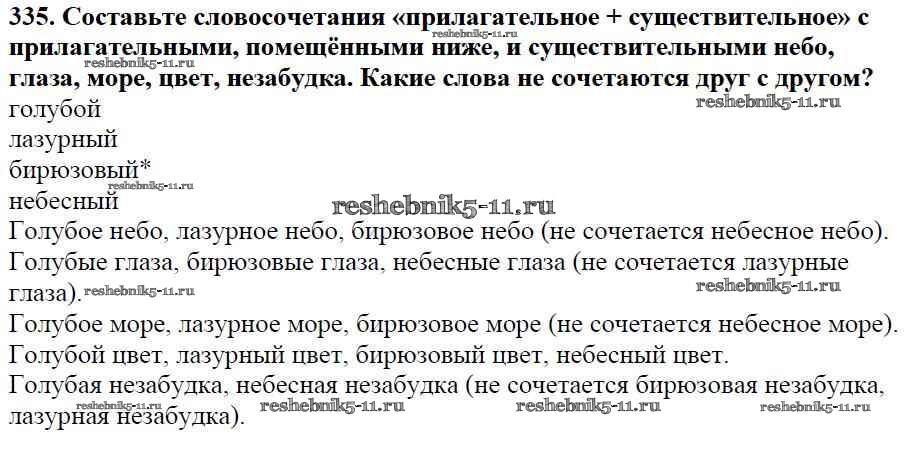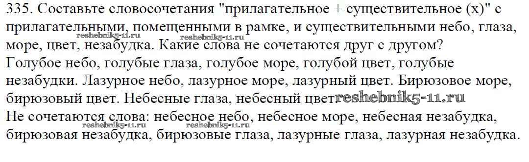 Готовая домашняя работа с ответами по Русскому языку за 5 класс Баранов, Ладыженская, Тростенцова, Кулибаба, Григорян Учебник Часть 1, 2 Просвещение 2016 ФГОС - Часть 1. Упражнения 335