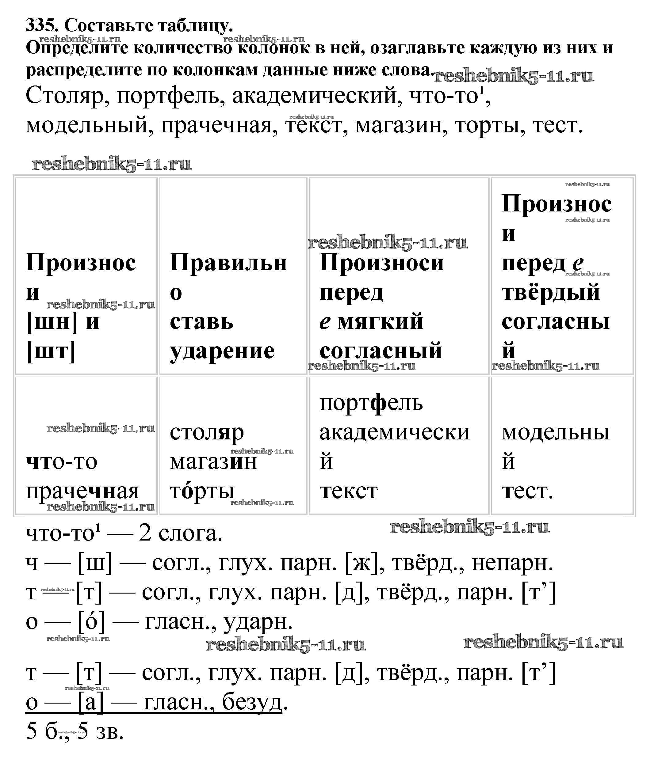 Русский язык за 5 класс Баранов Учебник Просвещение часть 1. упражнение 335