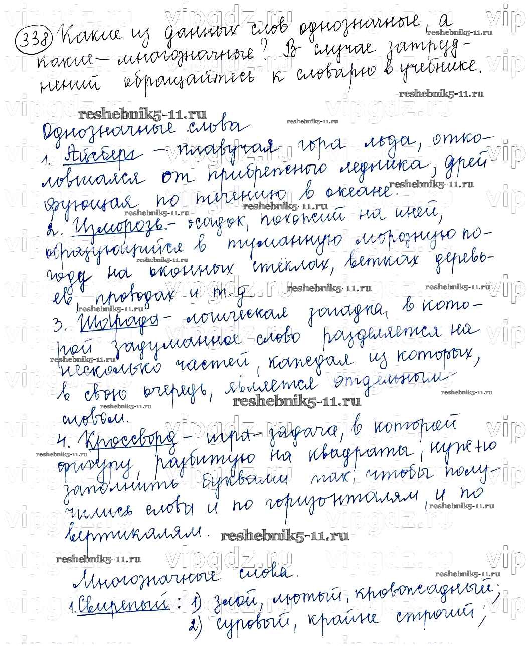 Готовая домашняя работа с ответами по Русскому языку за 5 класс Баранов, Ладыженская, Тростенцова, Кулибаба, Григорян Учебник Часть 1, 2 Просвещение 2016 ФГОС - Часть 1. Упражнения 338