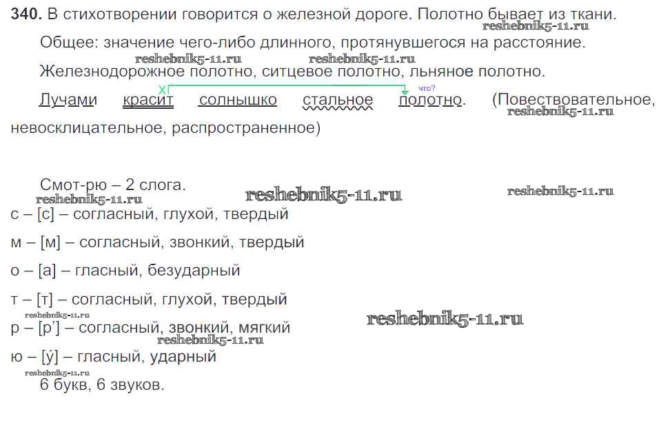 Готовая домашняя работа с ответами по Русскому языку за 5 класс Баранов, Ладыженская, Тростенцова, Кулибаба, Григорян Учебник Часть 1, 2 Просвещение 2016 ФГОС - Часть 1. Упражнения 340