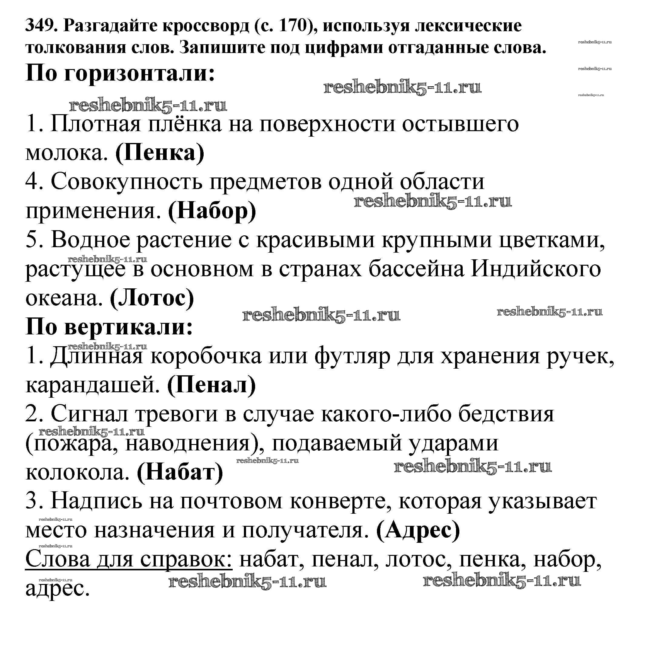 Готовая домашняя работа с ответами по Русскому языку за 5 класс Баранов, Ладыженская, Тростенцова, Кулибаба, Григорян Учебник Часть 1, 2 Просвещение 2016 ФГОС - Часть 1. Упражнения 349