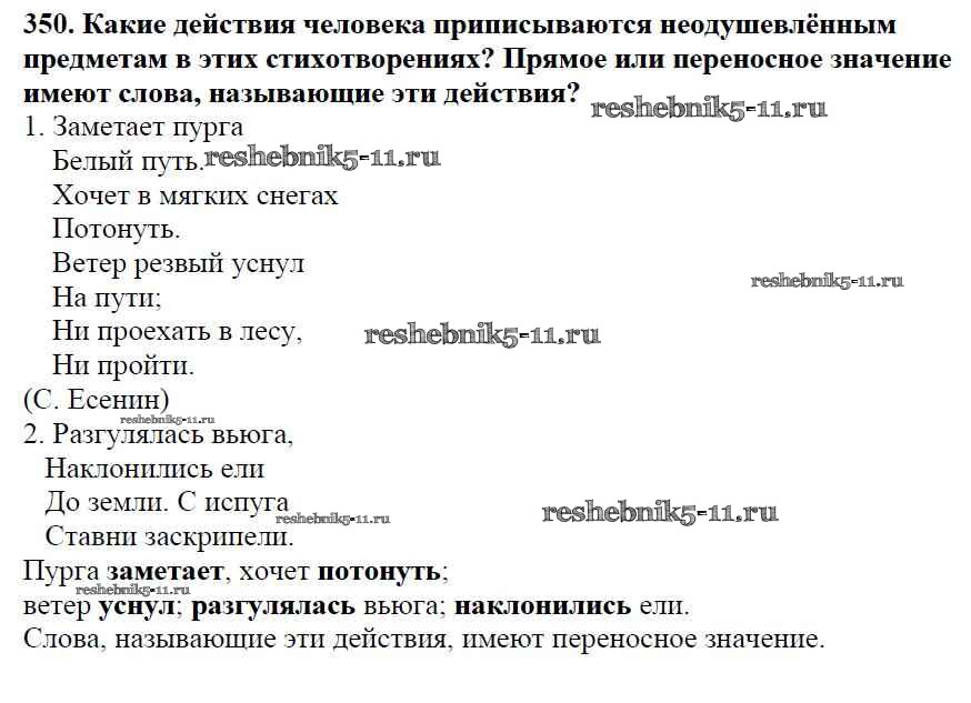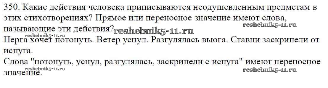 Готовая домашняя работа с ответами по Русскому языку за 5 класс Баранов, Ладыженская, Тростенцова, Кулибаба, Григорян Учебник Часть 1, 2 Просвещение 2016 ФГОС - Часть 1. Упражнения 350