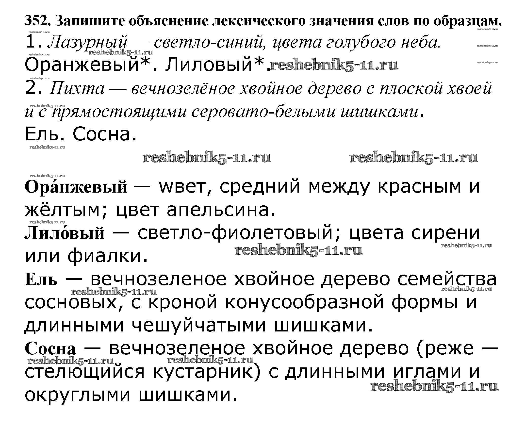 Готовая домашняя работа с ответами по Русскому языку за 5 класс Баранов, Ладыженская, Тростенцова, Кулибаба, Григорян Учебник Часть 1, 2 Просвещение 2016 ФГОС - Часть 1. Упражнения 352