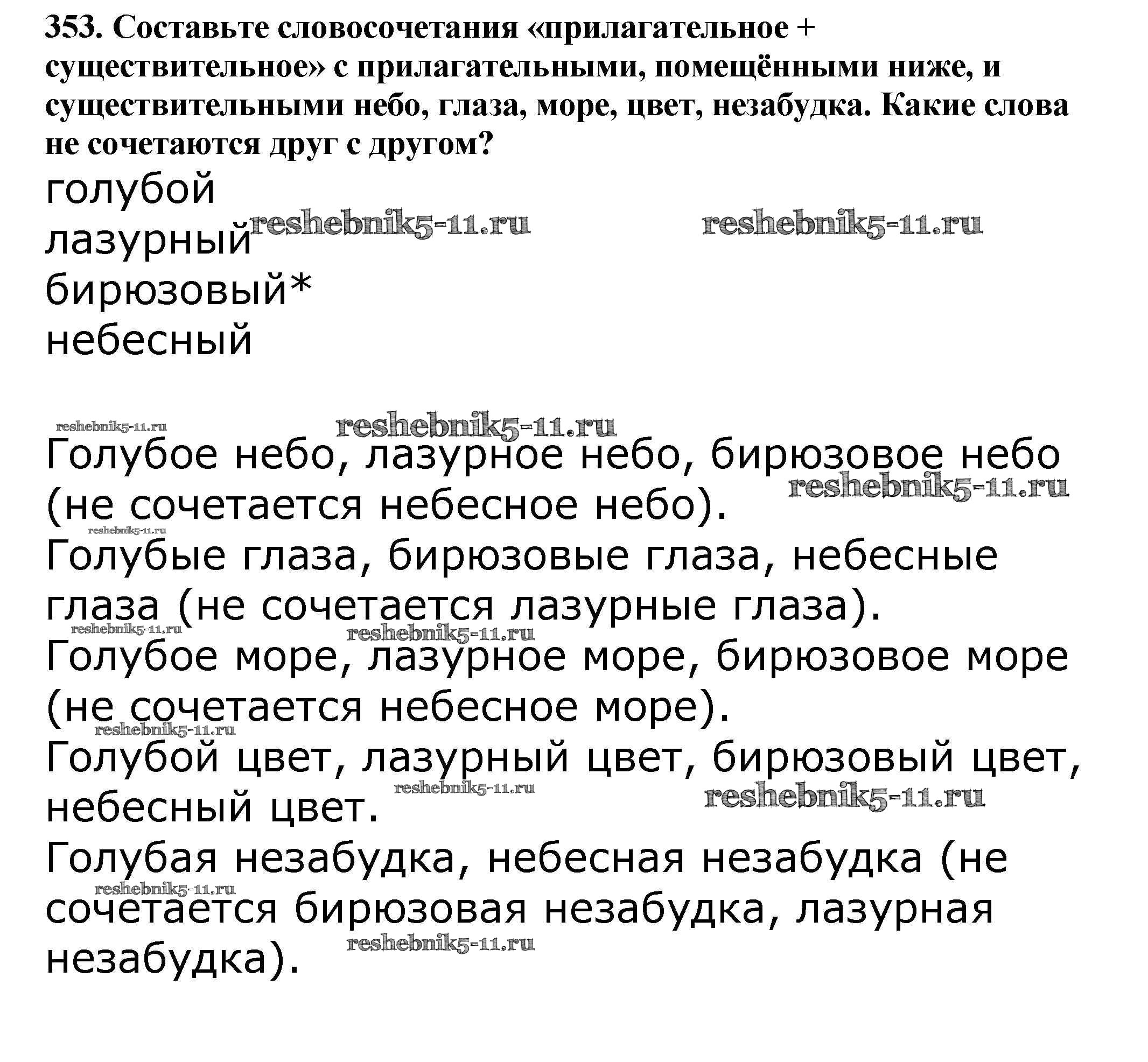 Готовая домашняя работа с ответами по Русскому языку за 5 класс Баранов, Ладыженская, Тростенцова, Кулибаба, Григорян Учебник Часть 1, 2 Просвещение 2016 ФГОС - Часть 1. Упражнения 353