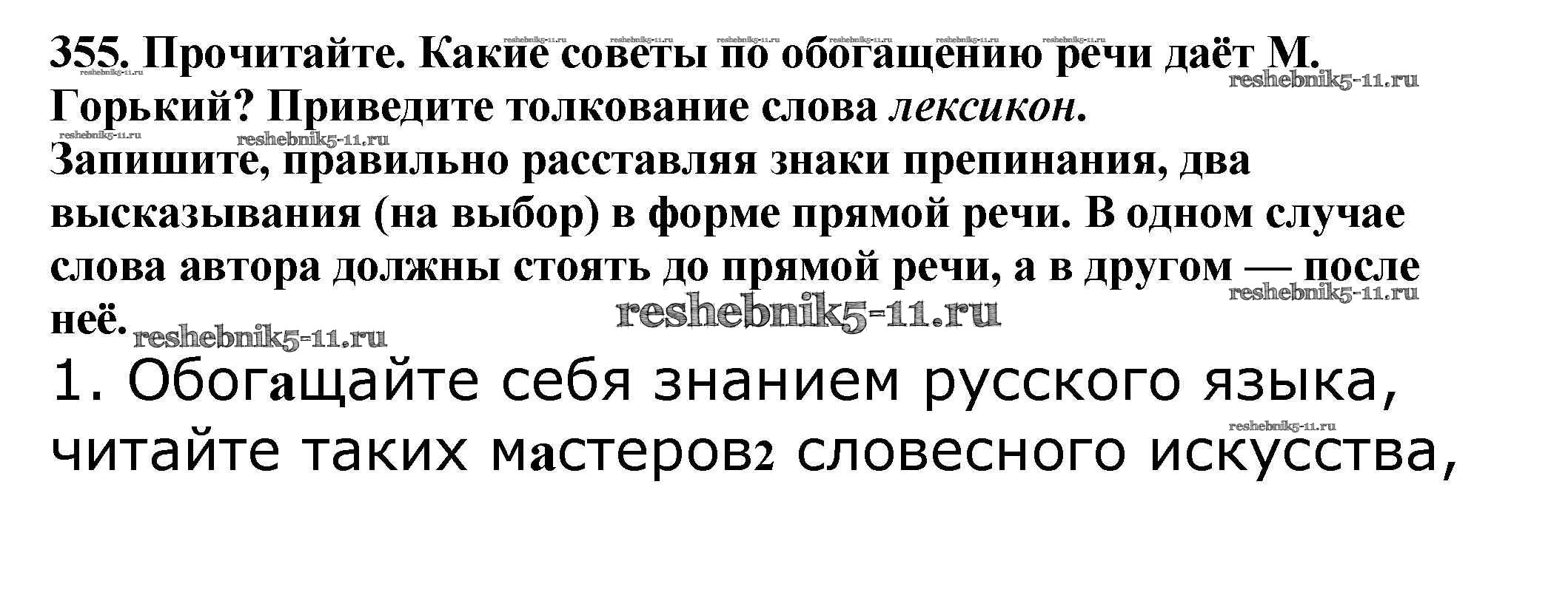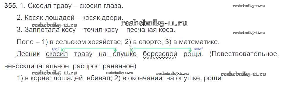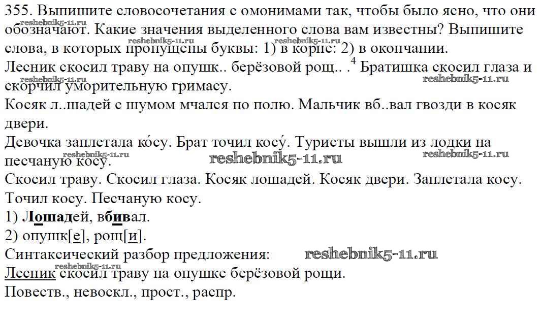 Русский язык за 5 класс Баранов Учебник Просвещение часть 1. упражнение 355