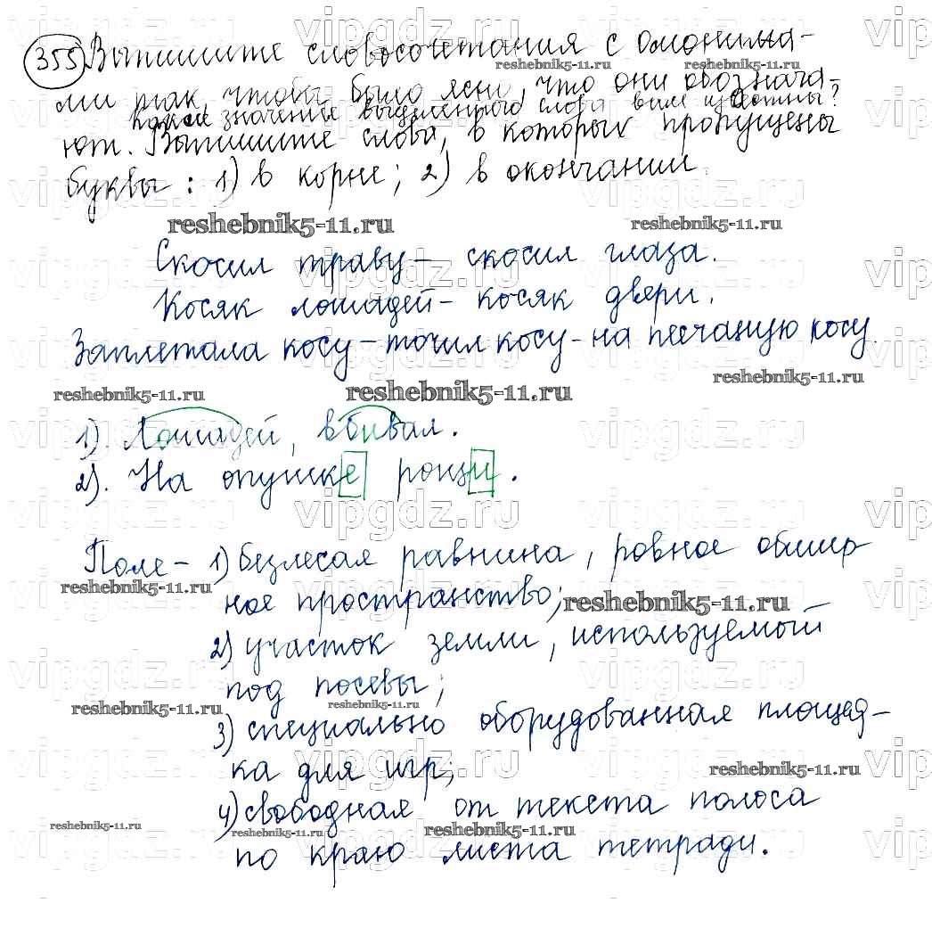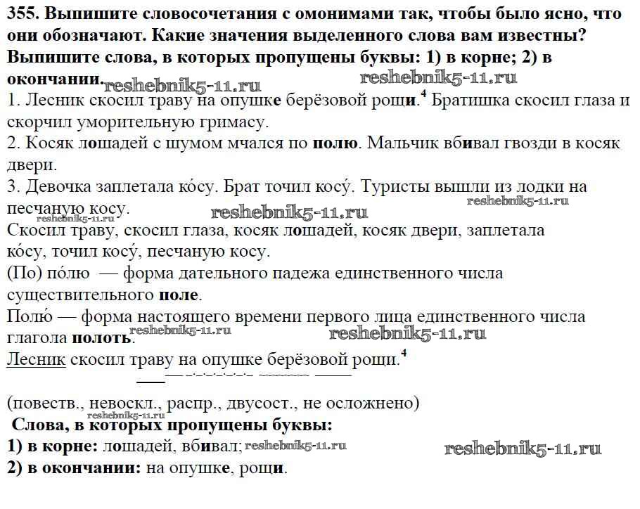 Готовая домашняя работа с ответами по Русскому языку за 5 класс Баранов, Ладыженская, Тростенцова, Кулибаба, Григорян Учебник Часть 1, 2 Просвещение 2016 ФГОС - Часть 1. Упражнения 355