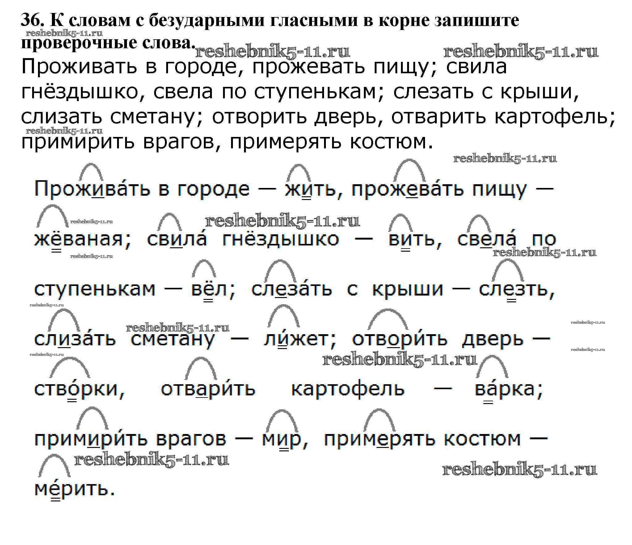 Готовая домашняя работа с ответами по Русскому языку за 5 класс Баранов, Ладыженская, Тростенцова, Кулибаба, Григорян Учебник Часть 1, 2 Просвещение 2016 ФГОС - Часть 1. Упражнения 36