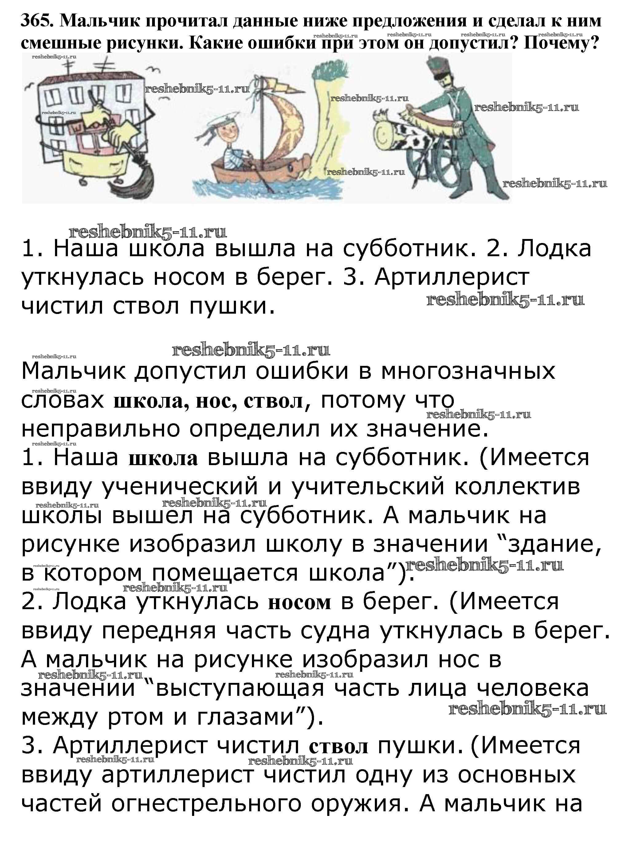 Готовая домашняя работа с ответами по Русскому языку за 5 класс Баранов, Ладыженская, Тростенцова, Кулибаба, Григорян Учебник Часть 1, 2 Просвещение 2016 ФГОС - Часть 1. Упражнения 365