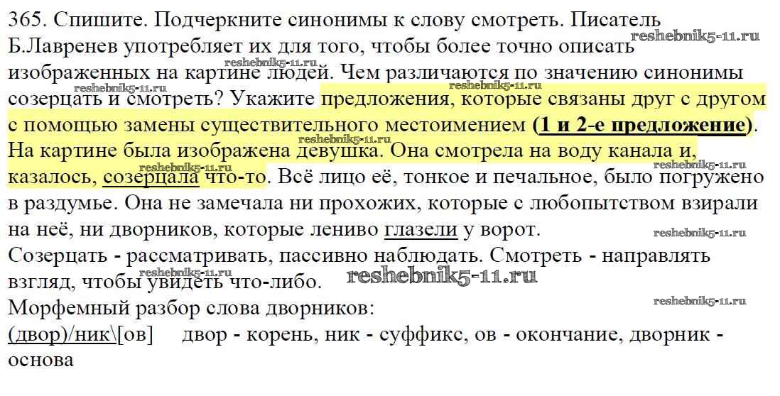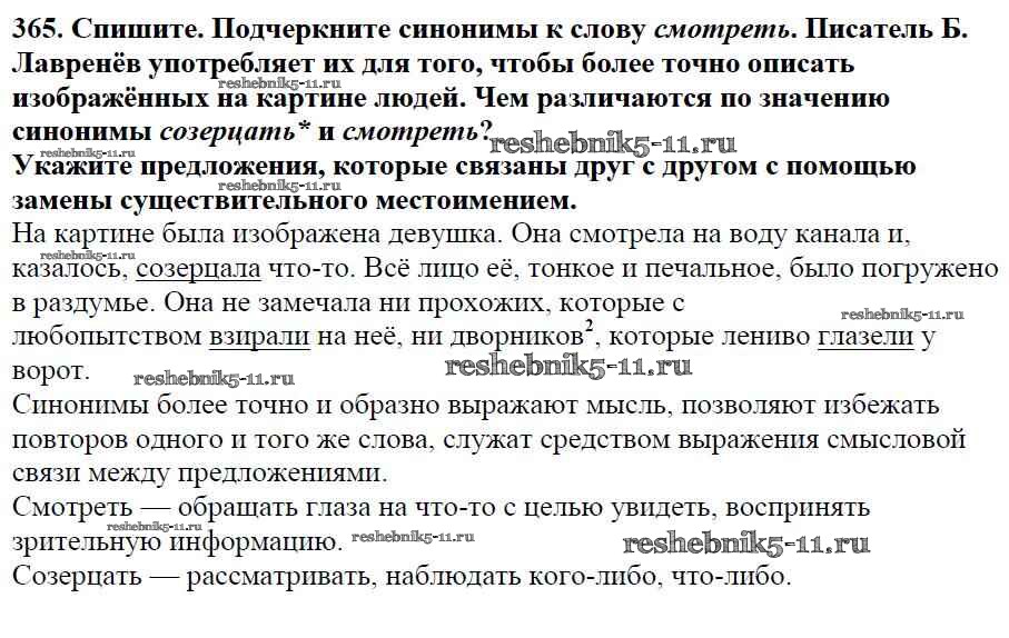 Русский язык за 5 класс Баранов Учебник Просвещение часть 1. упражнение 365
