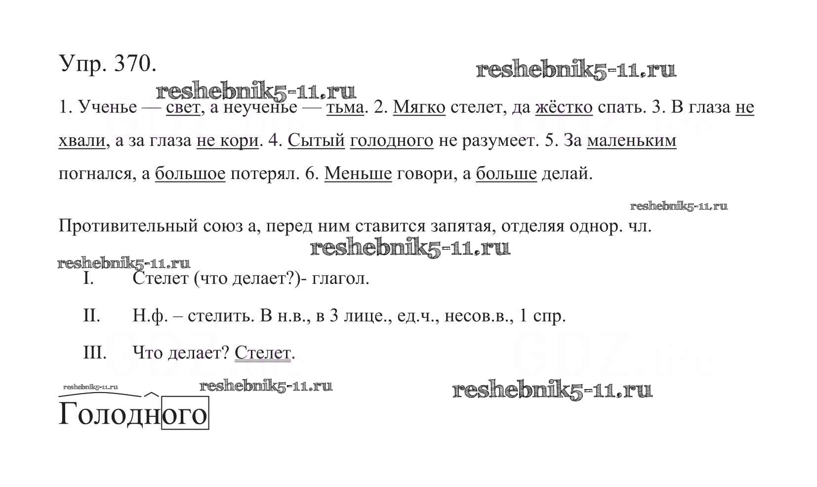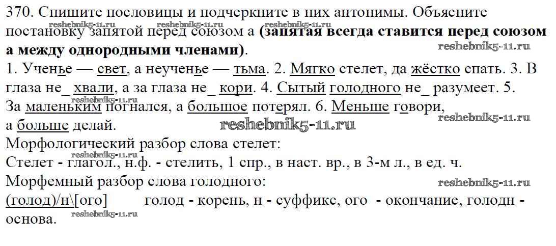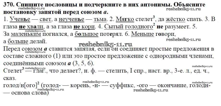 Готовая домашняя работа с ответами по Русскому языку за 5 класс Баранов, Ладыженская, Тростенцова, Кулибаба, Григорян Учебник Часть 1, 2 Просвещение 2016 ФГОС - Часть 1. Упражнения 370