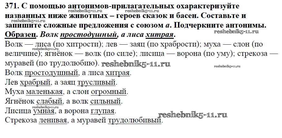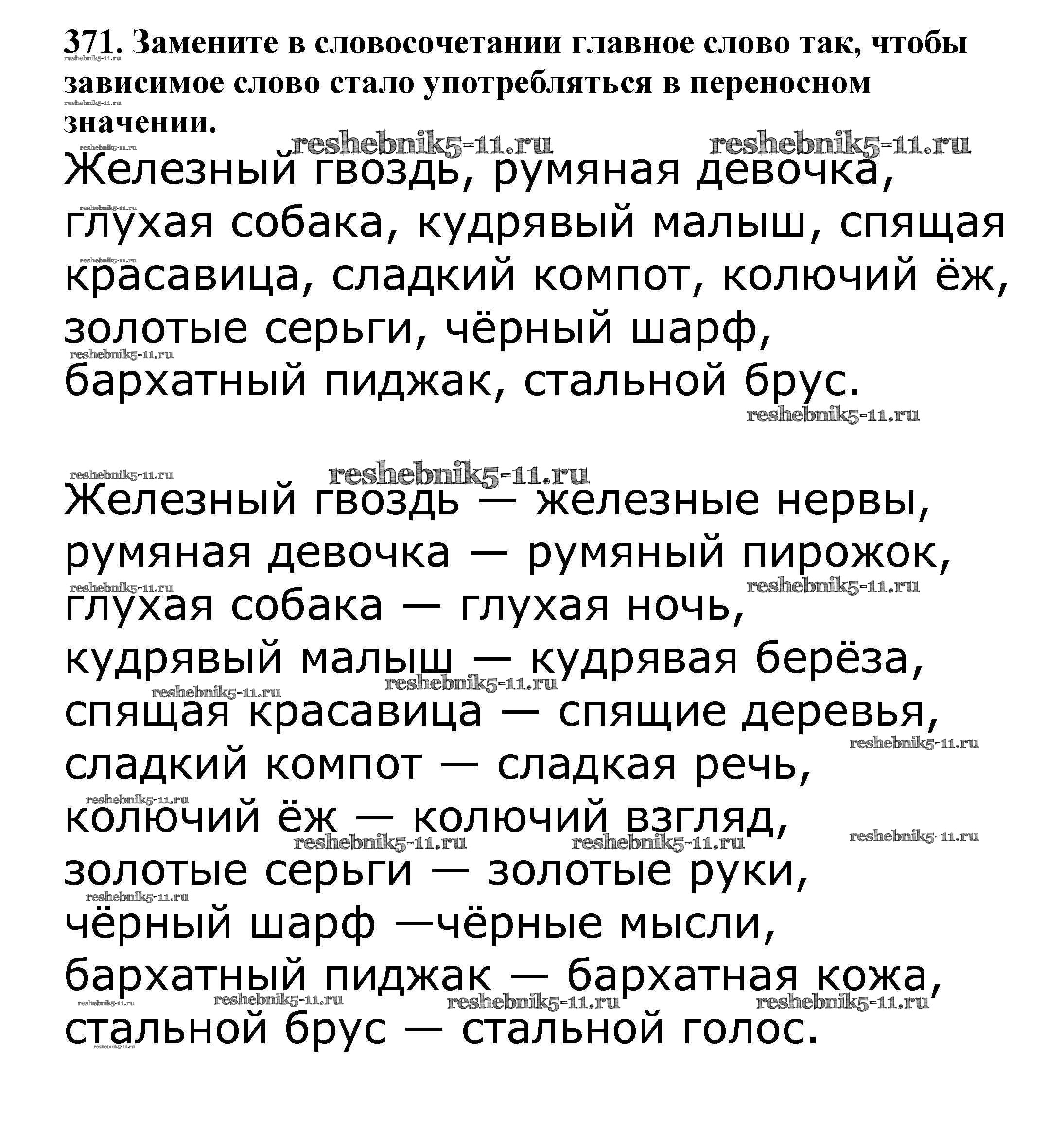 Готовая домашняя работа с ответами по Русскому языку за 5 класс Баранов, Ладыженская, Тростенцова, Кулибаба, Григорян Учебник Часть 1, 2 Просвещение 2016 ФГОС - Часть 1. Упражнения 371