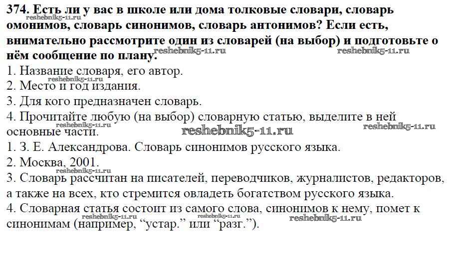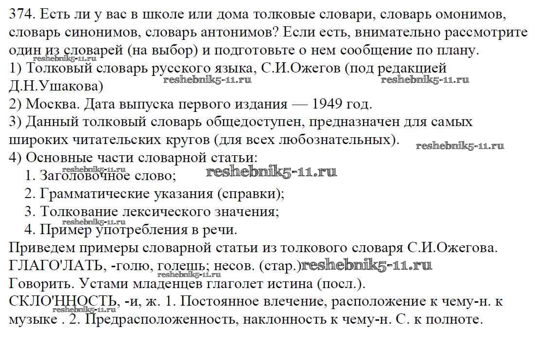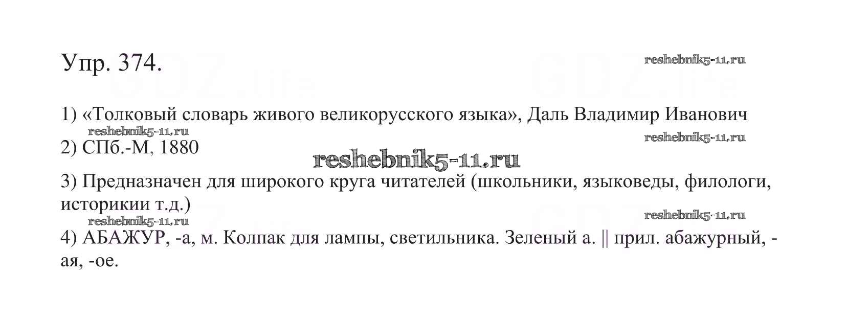 Русский язык за 5 класс Баранов Учебник Просвещение часть 1. упражнение 374
