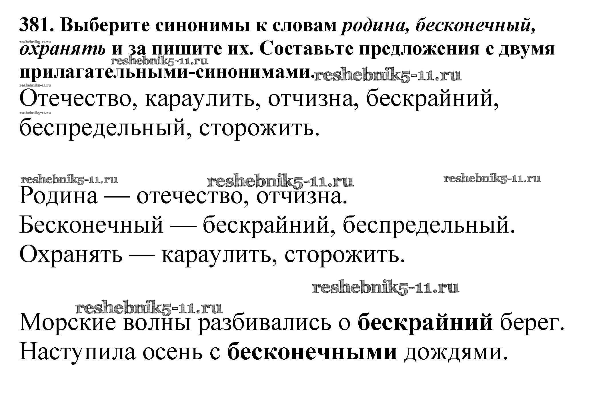 Русский язык за 5 класс Баранов Учебник Просвещение часть 1. упражнение 381