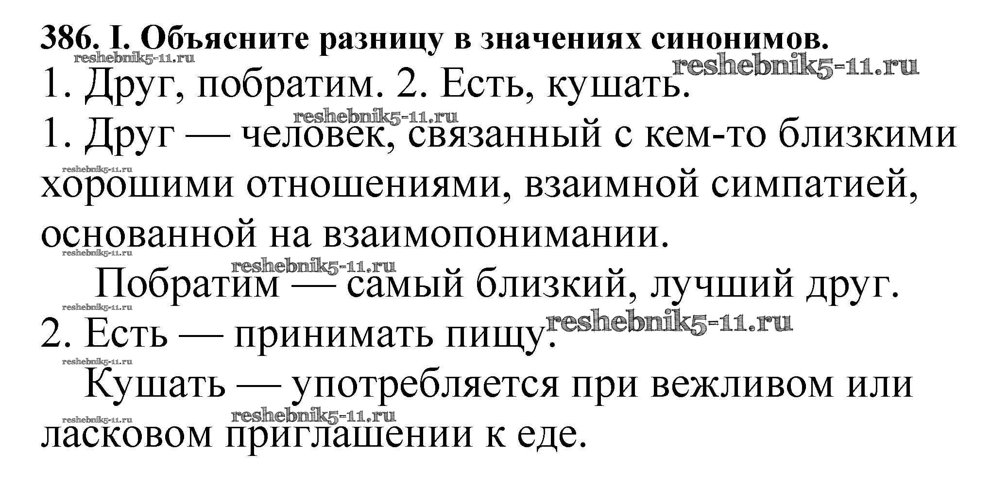 Русский язык за 5 класс Баранов Учебник Просвещение часть 1. упражнение 386