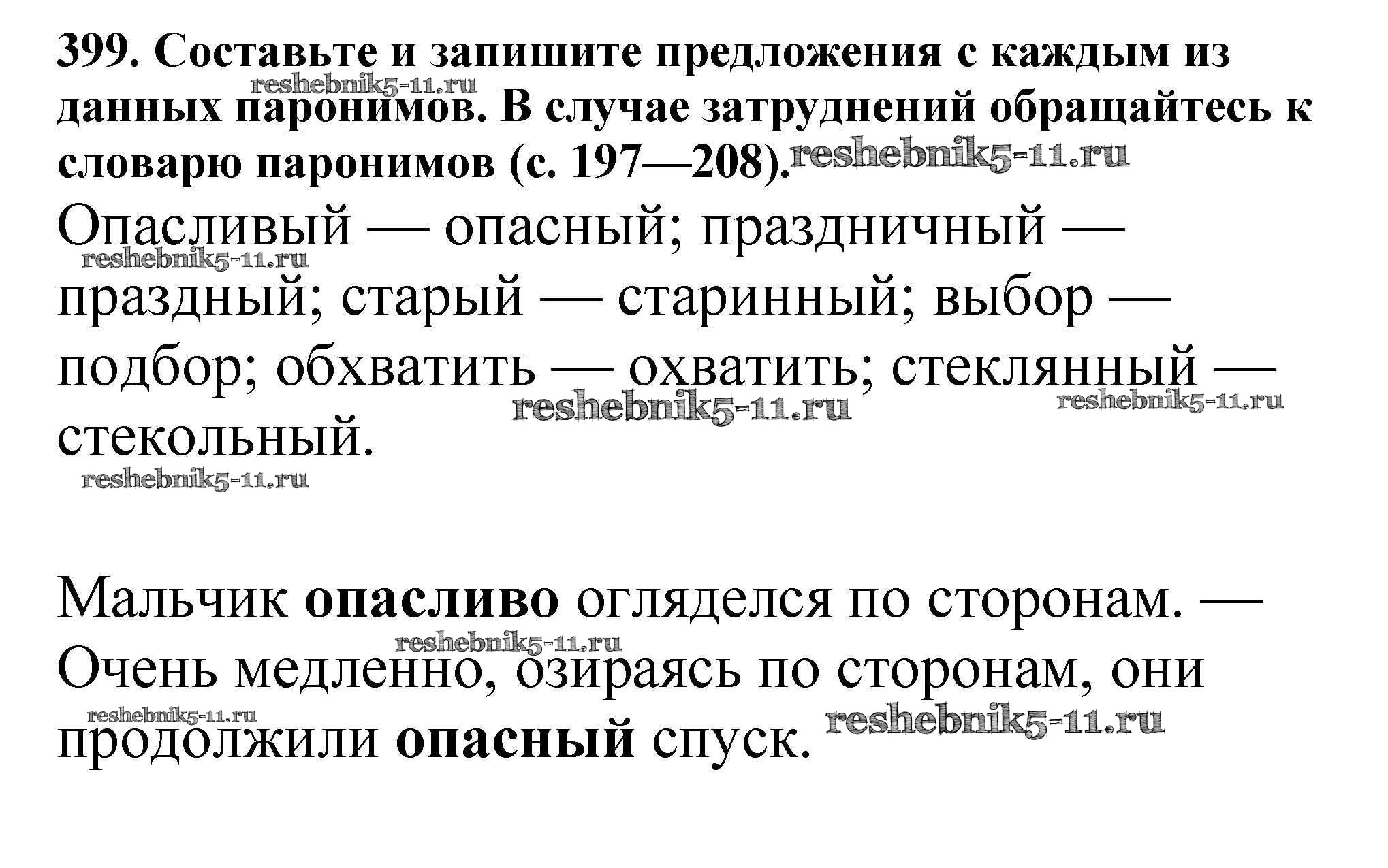 Готовая домашняя работа с ответами по Русскому языку за 5 класс Баранов, Ладыженская, Тростенцова, Кулибаба, Григорян Учебник Часть 1, 2 Просвещение 2016 ФГОС - Часть 1. Упражнения 399