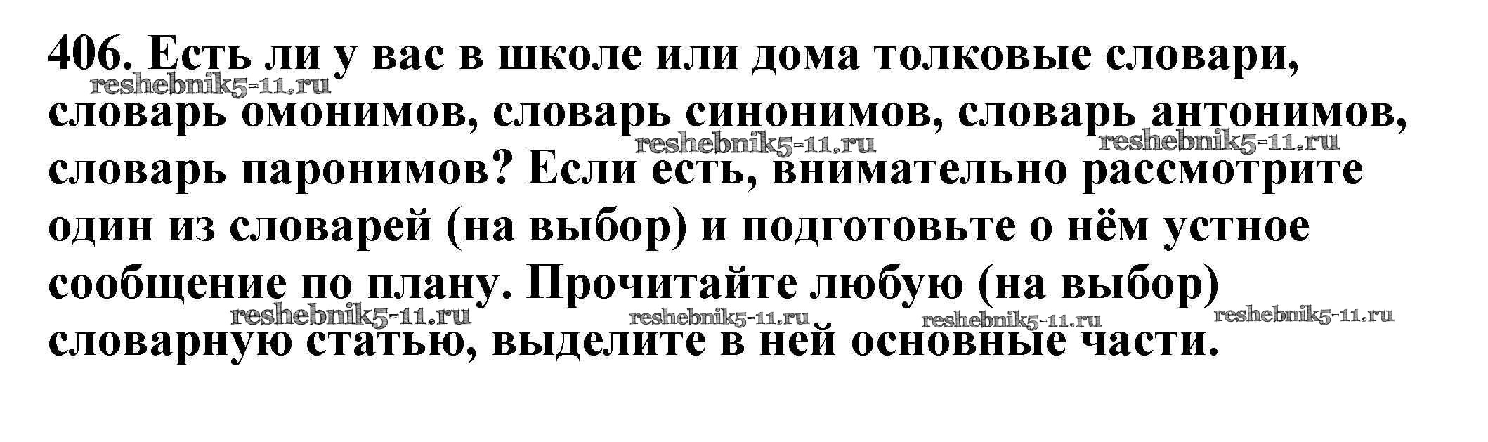 Русский язык за 5 класс Баранов Учебник Просвещение часть 1. упражнение 406