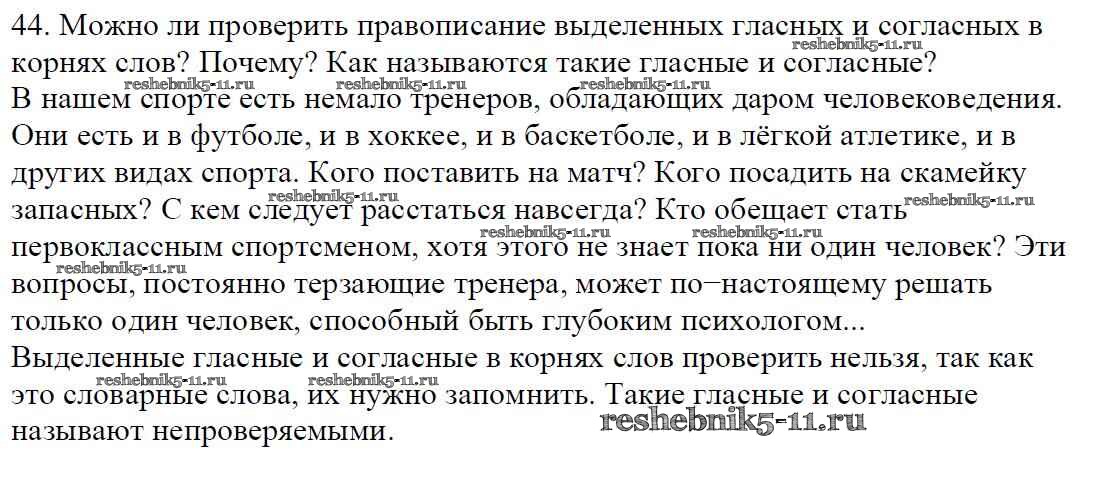 Русский язык за 5 класс Баранов Учебник Просвещение часть 1. упражнение 44