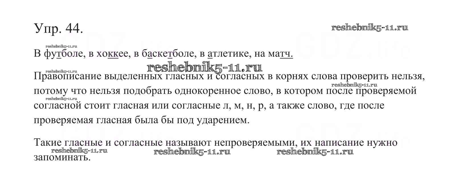 Готовая домашняя работа с ответами по Русскому языку за 5 класс Баранов, Ладыженская, Тростенцова, Кулибаба, Григорян Учебник Часть 1, 2 Просвещение 2016 ФГОС - Часть 1. Упражнения 44
