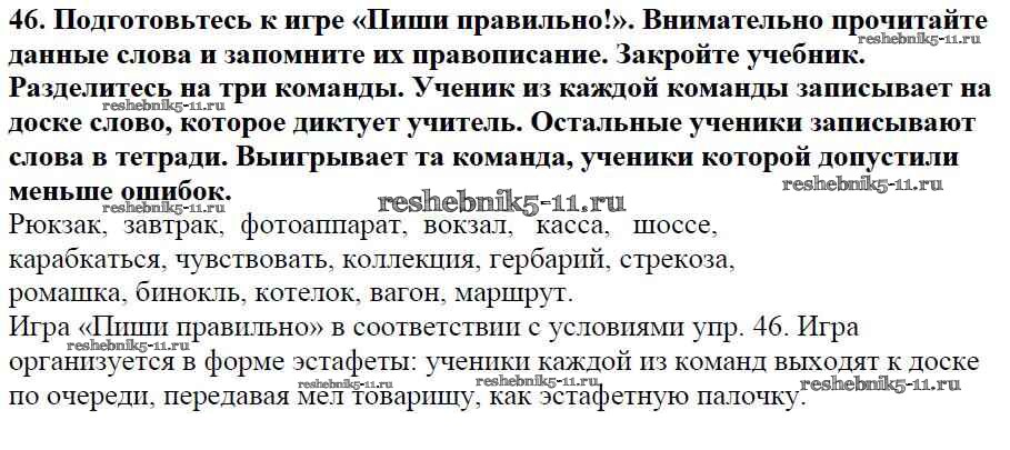 Русский язык за 5 класс Баранов Учебник Просвещение часть 1. упражнение 46