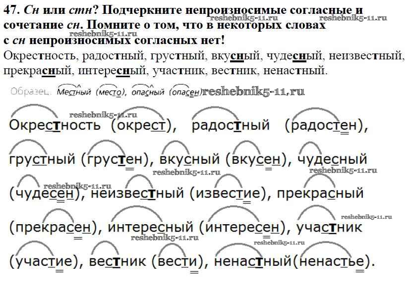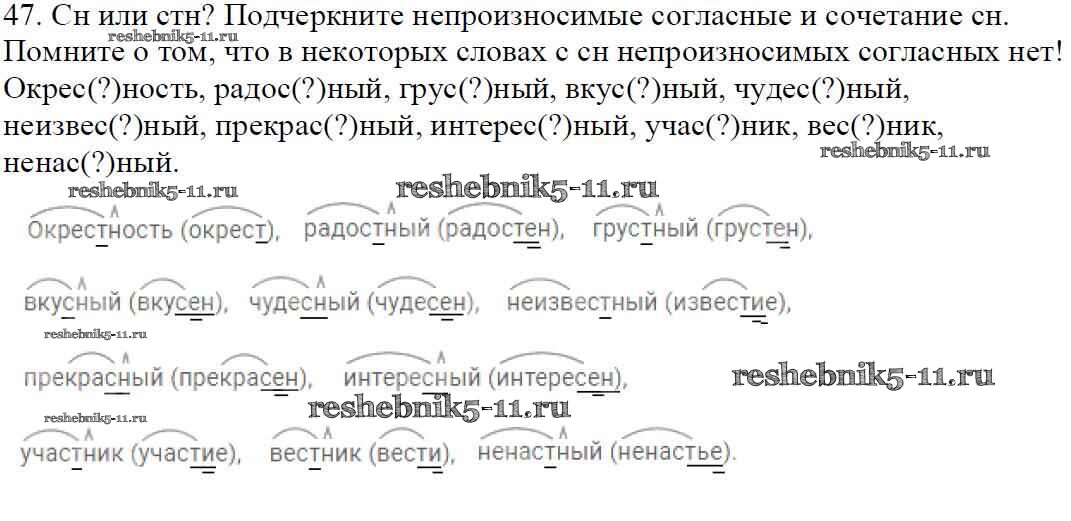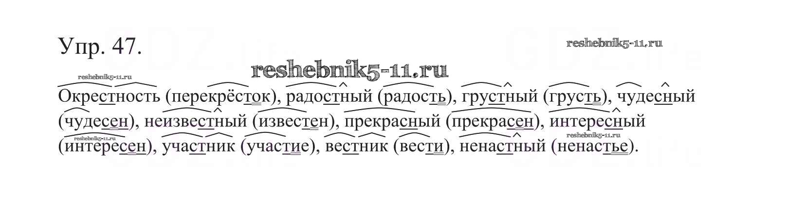 Готовая домашняя работа с ответами по Русскому языку за 5 класс Баранов, Ладыженская, Тростенцова, Кулибаба, Григорян Учебник Часть 1, 2 Просвещение 2016 ФГОС - Часть 1. Упражнения 47