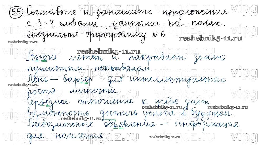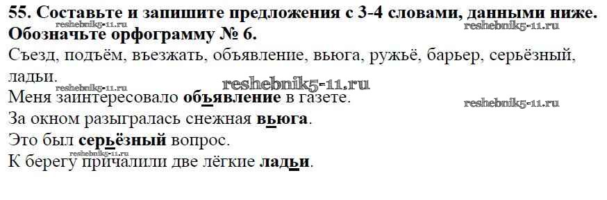 Готовая домашняя работа с ответами по Русскому языку за 5 класс Баранов, Ладыженская, Тростенцова, Кулибаба, Григорян Учебник Часть 1, 2 Просвещение 2016 ФГОС - Часть 1. Упражнения 55