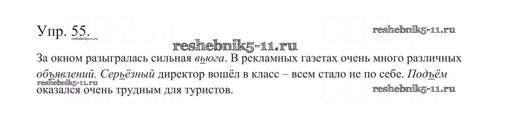 Русский язык за 5 класс Баранов Учебник Просвещение часть 1. упражнение 55