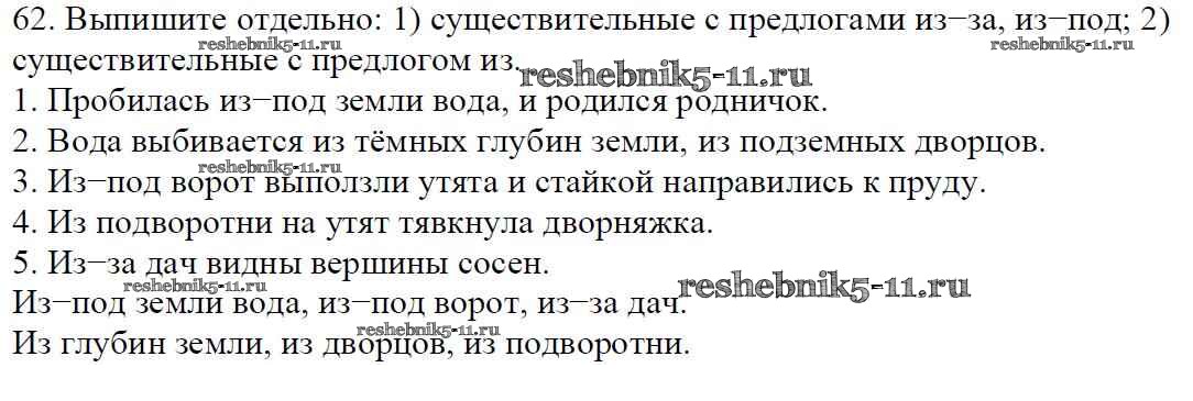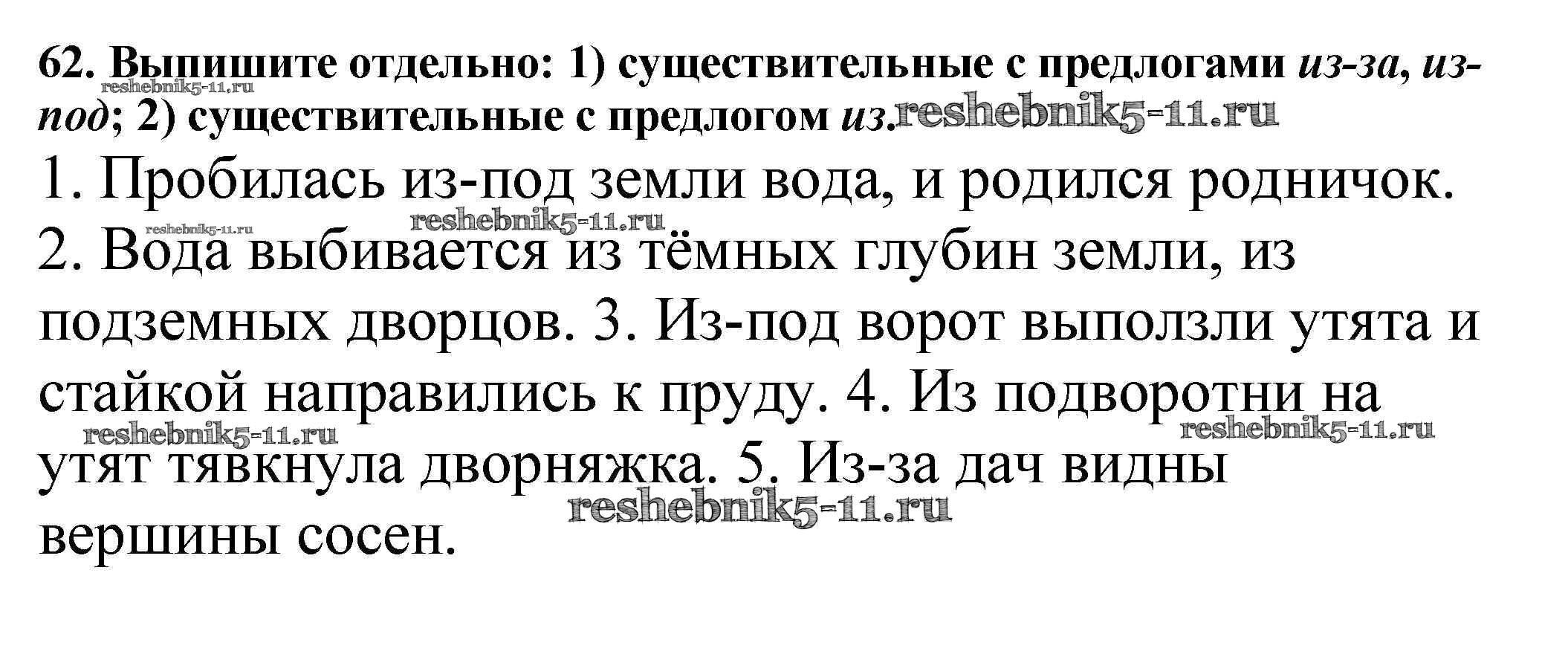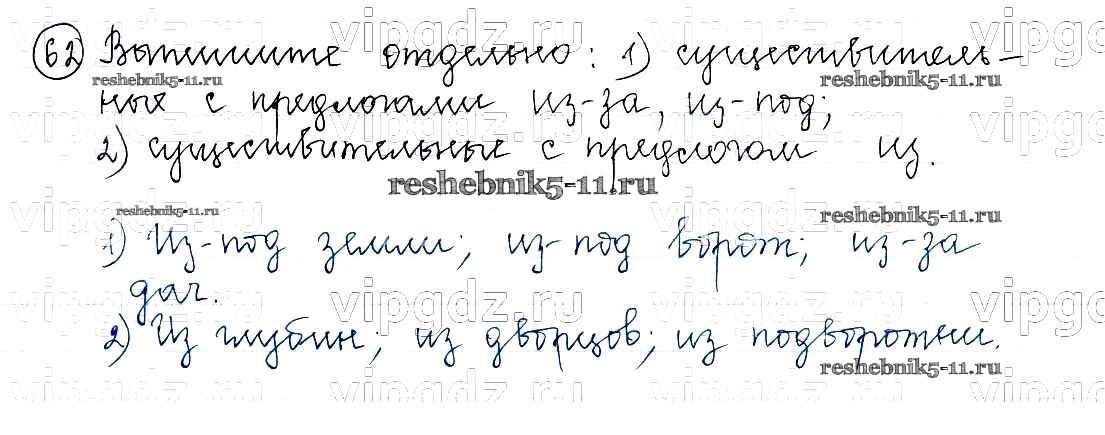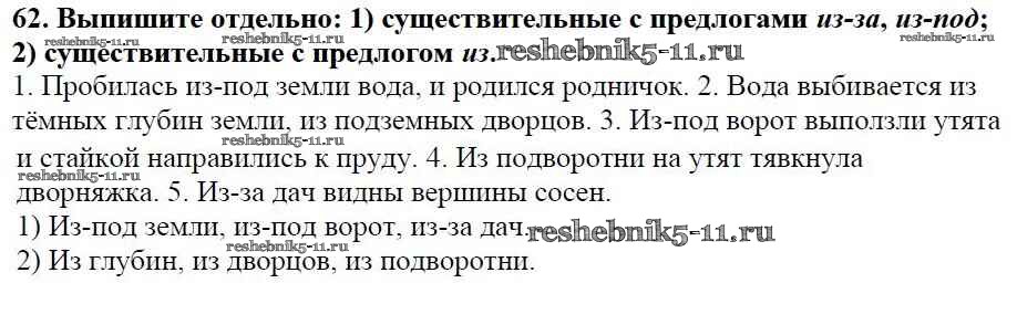Готовая домашняя работа с ответами по Русскому языку за 5 класс Баранов, Ладыженская, Тростенцова, Кулибаба, Григорян Учебник Часть 1, 2 Просвещение 2016 ФГОС - Часть 1. Упражнения 62