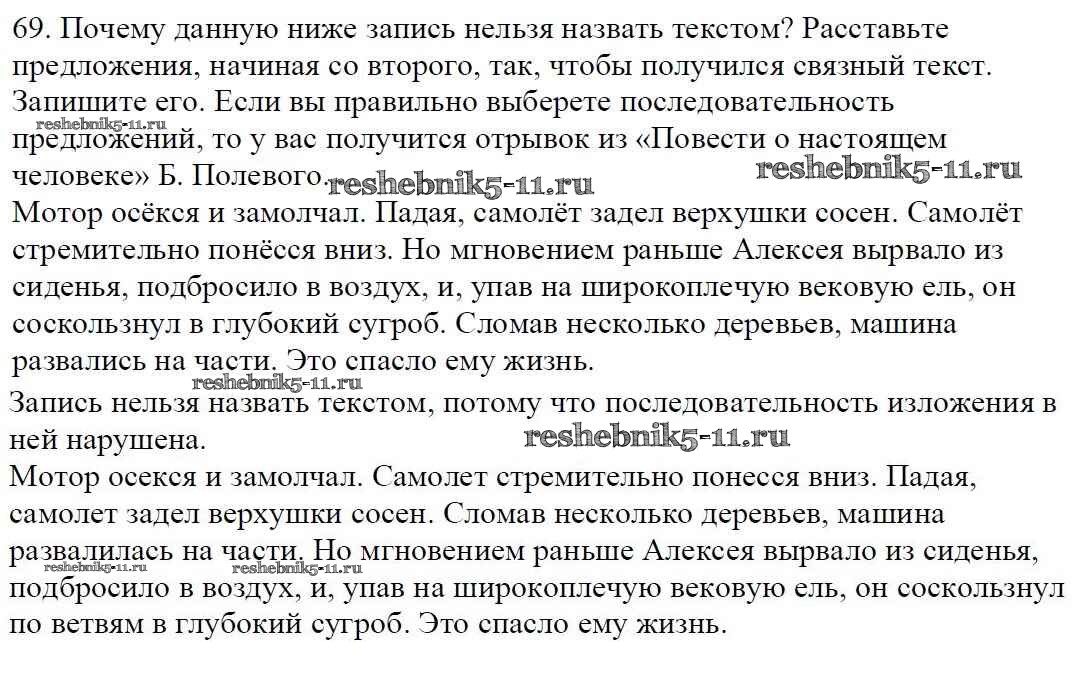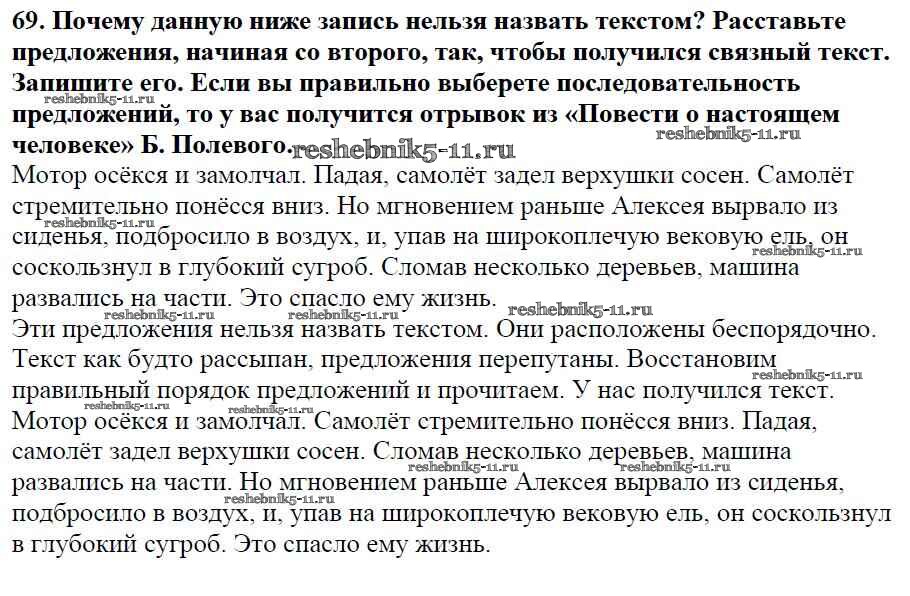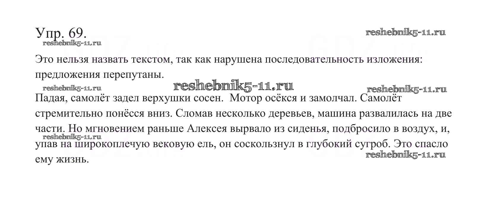 Русский язык за 5 класс Баранов Учебник Просвещение часть 1. упражнение 69