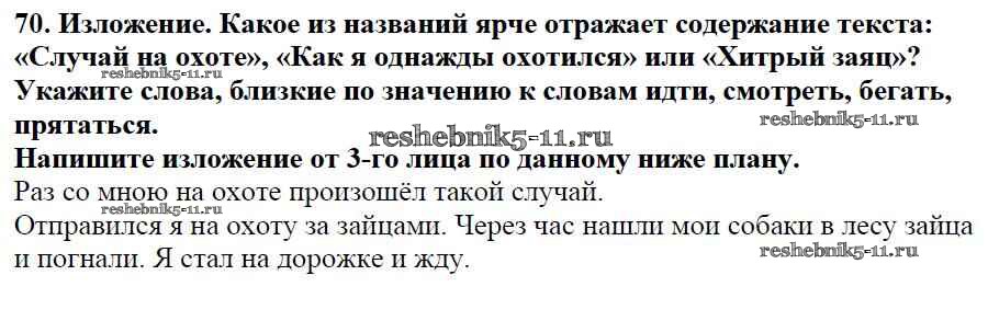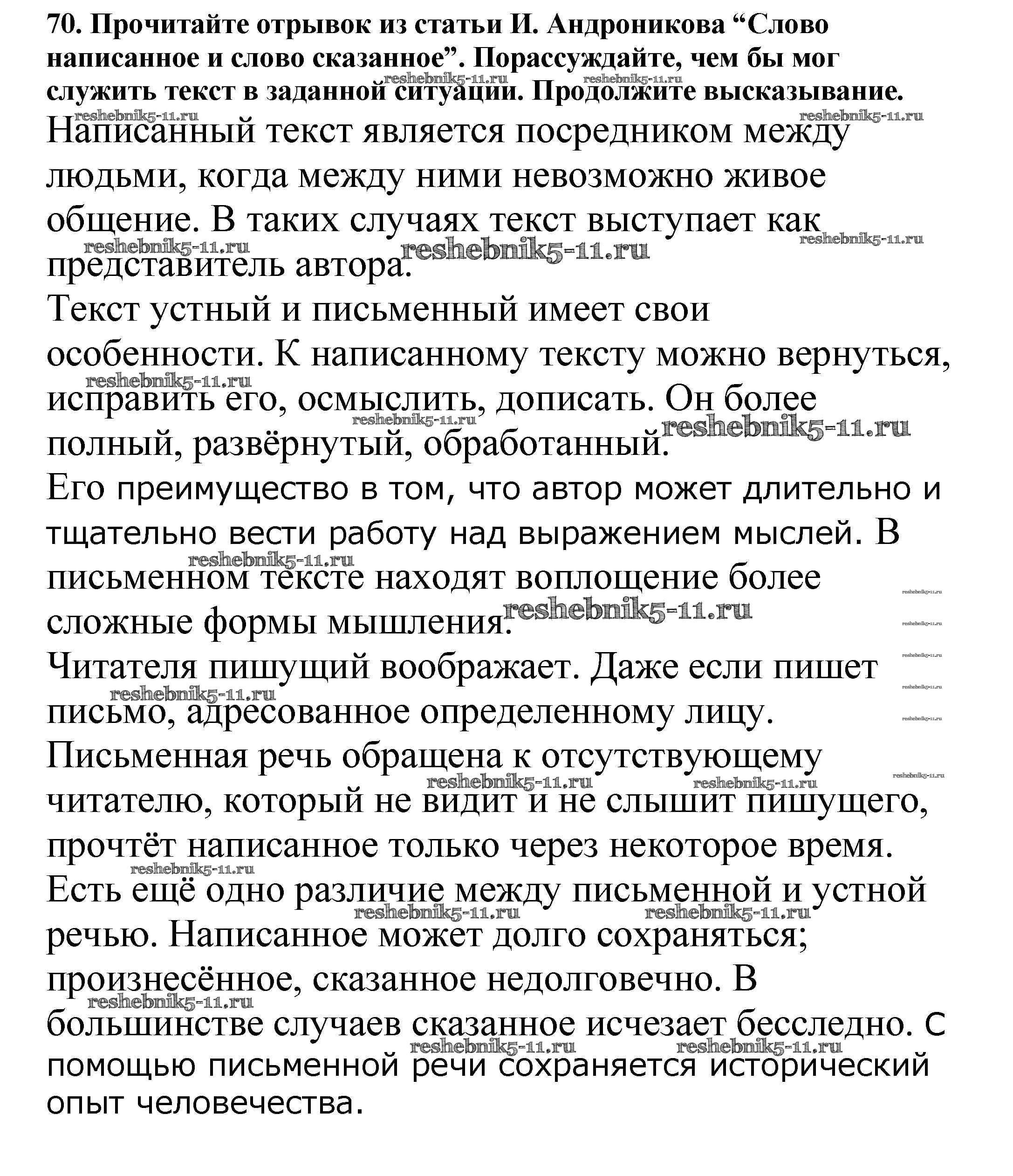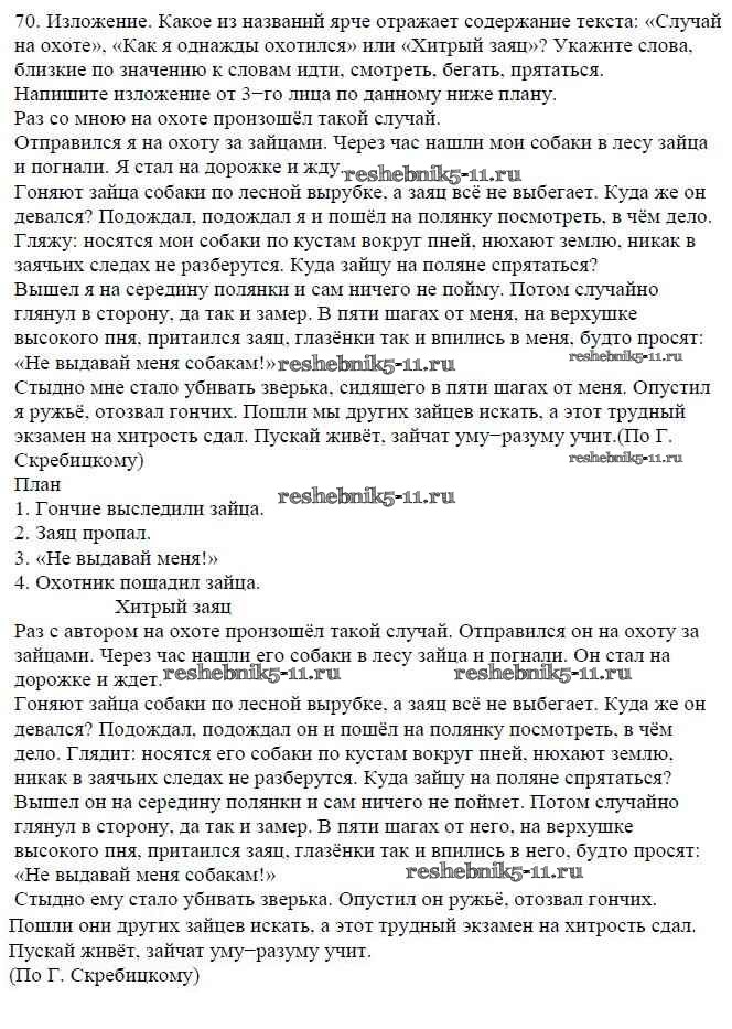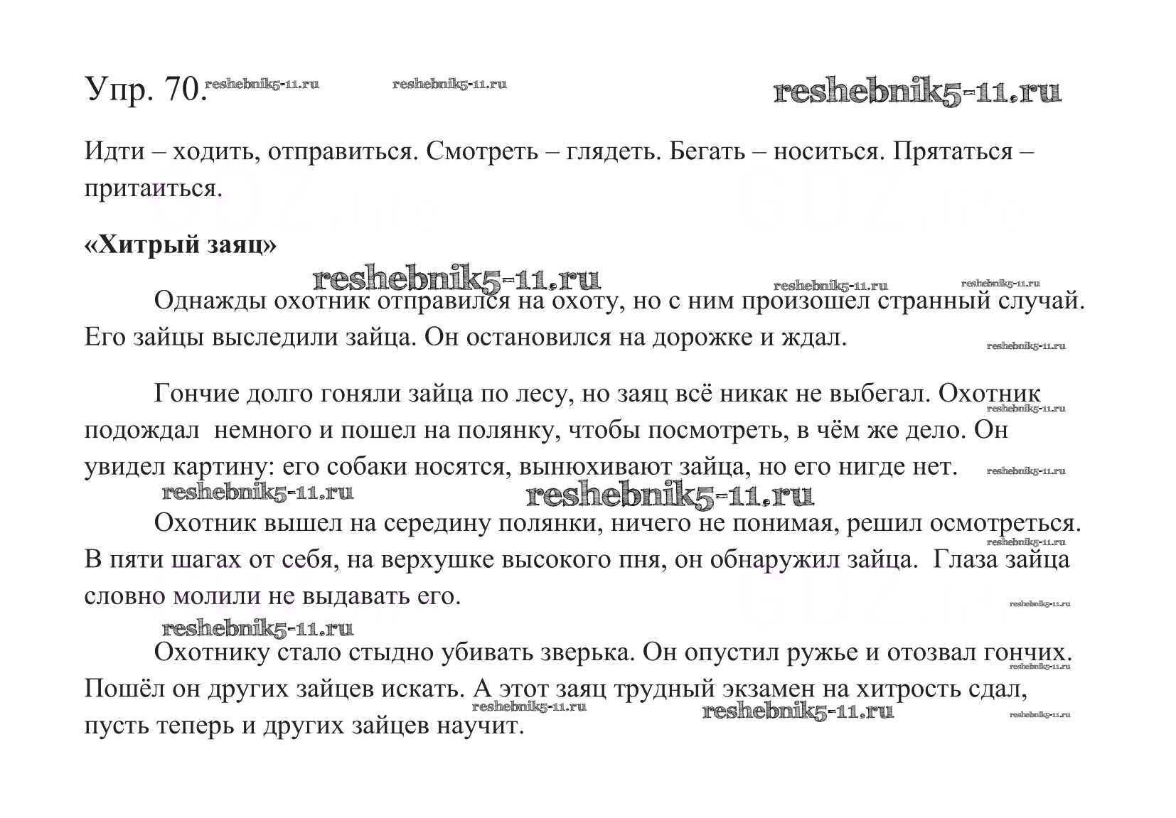 Русский язык за 5 класс Баранов Учебник Просвещение часть 1. упражнение 70