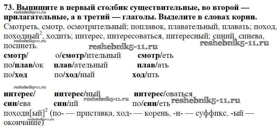 Готовая домашняя работа с ответами по Русскому языку за 5 класс Баранов, Ладыженская, Тростенцова, Кулибаба, Григорян Учебник Часть 1, 2 Просвещение 2016 ФГОС - Часть 1. Упражнения 73