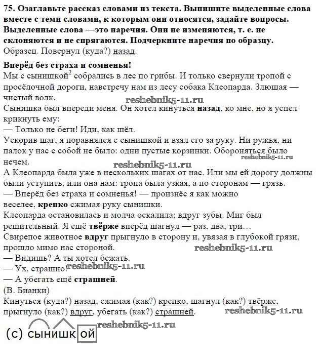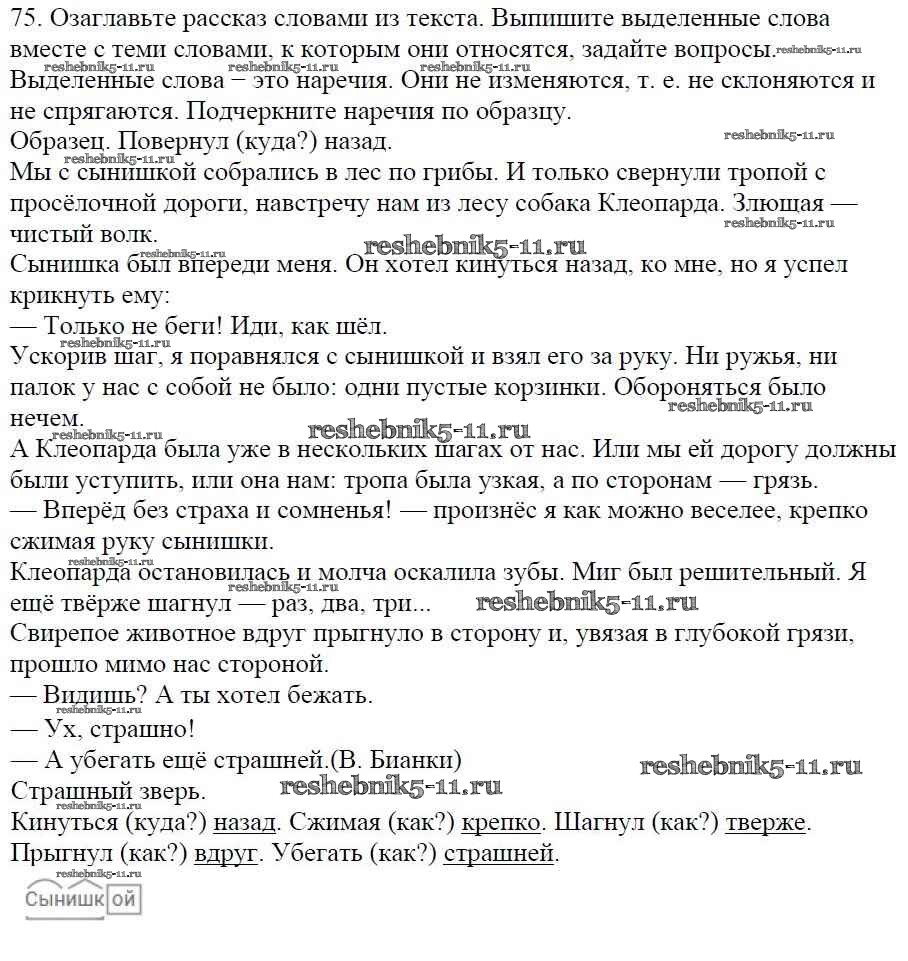 Русский язык за 5 класс Баранов Учебник Просвещение часть 1. упражнение 75