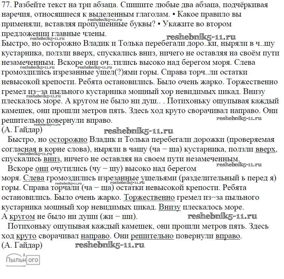 Русский язык за 5 класс Баранов Учебник Просвещение часть 1. упражнение 77