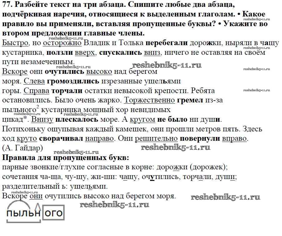 Готовая домашняя работа с ответами по Русскому языку за 5 класс Баранов, Ладыженская, Тростенцова, Кулибаба, Григорян Учебник Часть 1, 2 Просвещение 2016 ФГОС - Часть 1. Упражнения 77