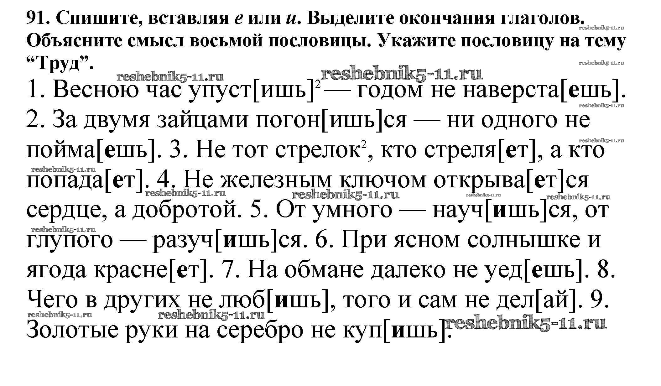 Русский язык за 5 класс Баранов Учебник Просвещение часть 1. упражнение 91