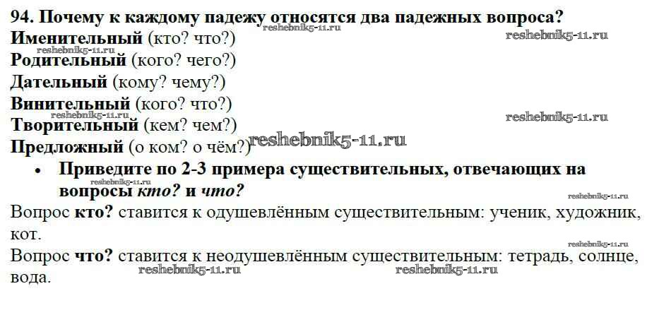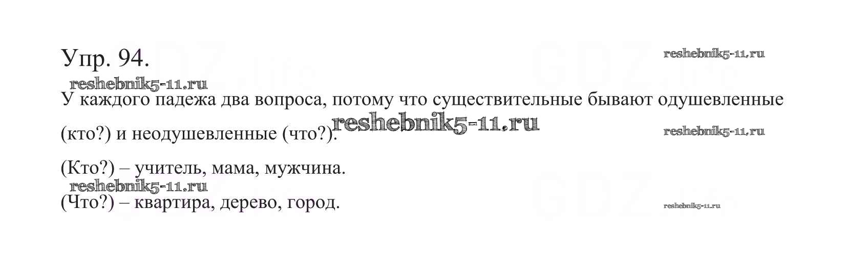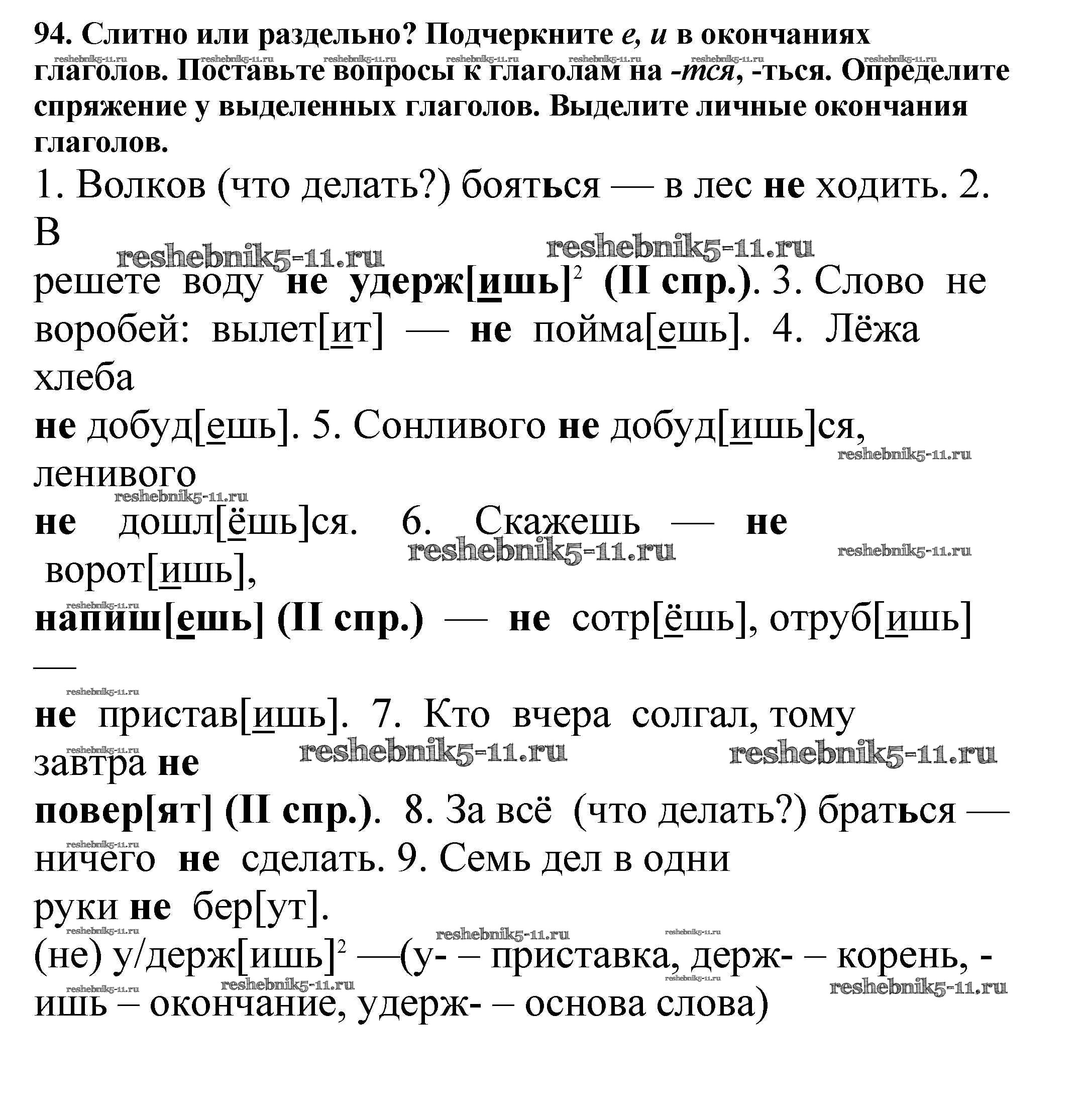 Готовая домашняя работа с ответами по Русскому языку за 5 класс Баранов, Ладыженская, Тростенцова, Кулибаба, Григорян Учебник Часть 1, 2 Просвещение 2016 ФГОС - Часть 1. Упражнения 94