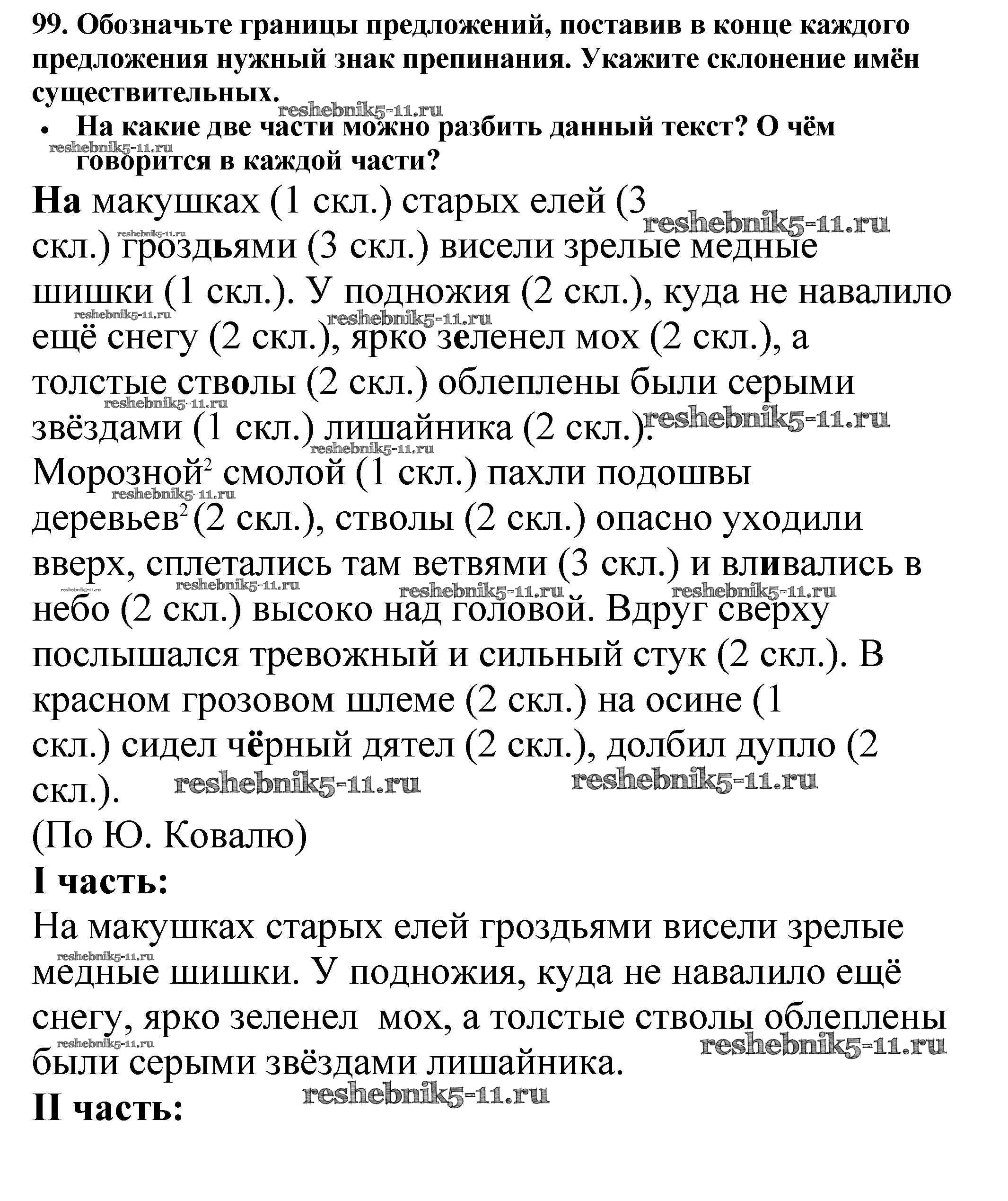 Русский язык за 5 класс Баранов Учебник Просвещение часть 1. упражнение 99