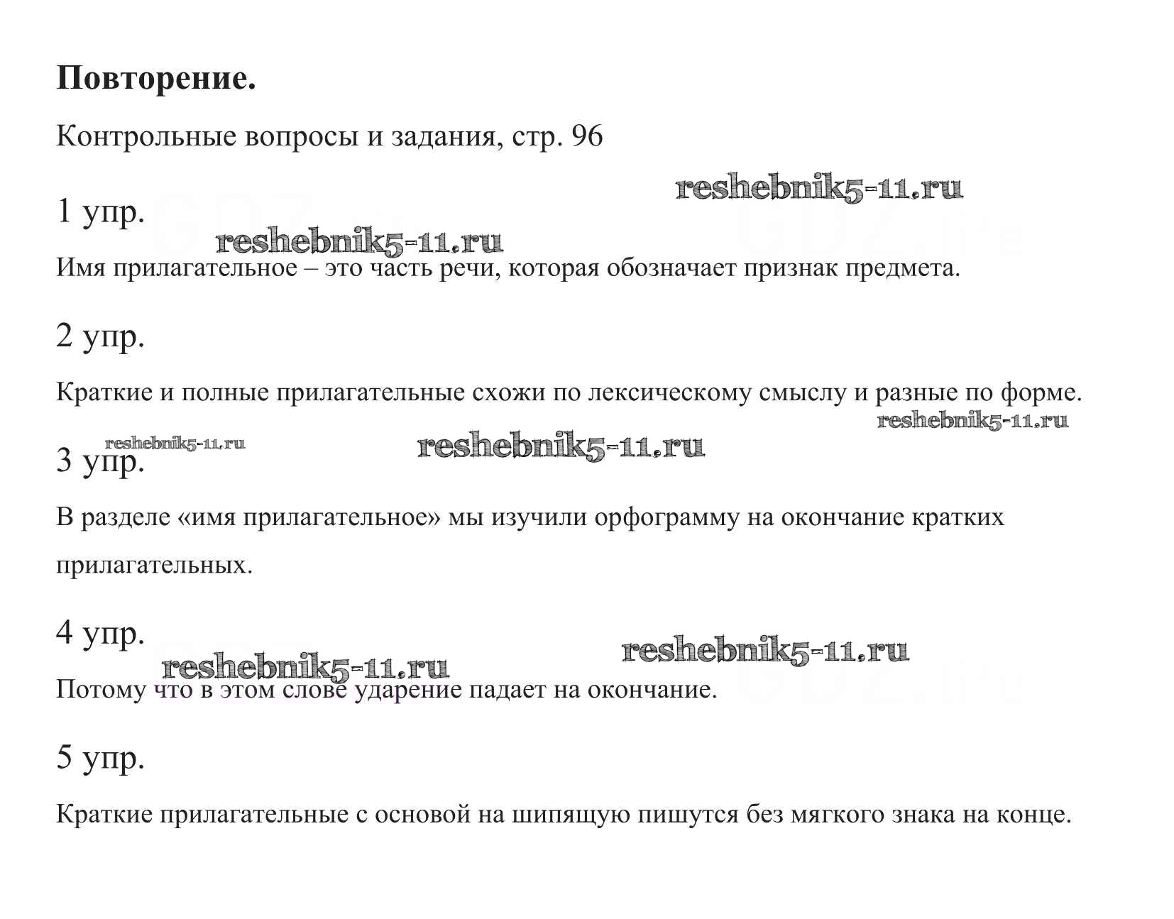 Решебник №5 / часть 2. упражнение / повторение. контрольный вопрос и задание / стр.96 (111-112)