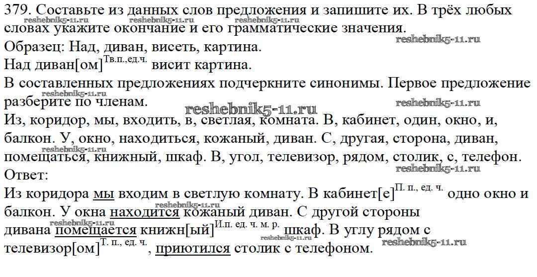 Готовая домашняя работа с ответами по Русскому языку за 5 класс Баранов, Ладыженская, Тростенцова, Кулибаба, Григорян Учебник Часть 1, 2 Просвещение 2016 ФГОС - Часть 2. Упражнения 379
