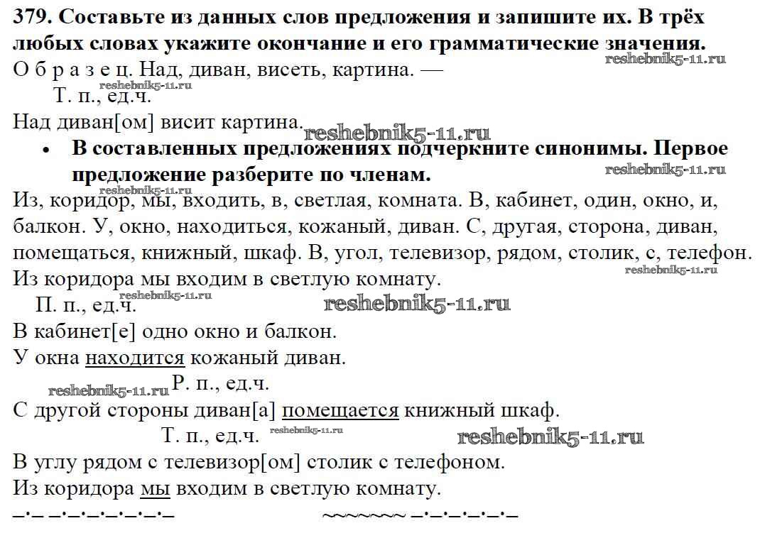 Русский язык за 5 класс Баранов Учебник Просвещение часть 2. упражнение 379