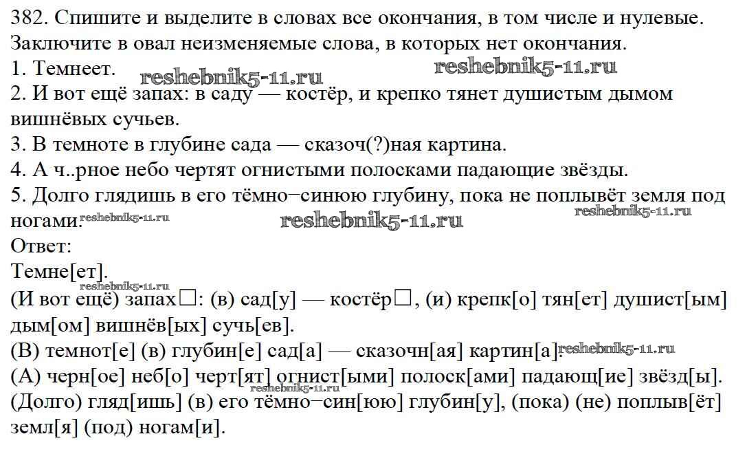 Готовая домашняя работа с ответами по Русскому языку за 5 класс Баранов, Ладыженская, Тростенцова, Кулибаба, Григорян Учебник Часть 1, 2 Просвещение 2016 ФГОС - Часть 2. Упражнения 382