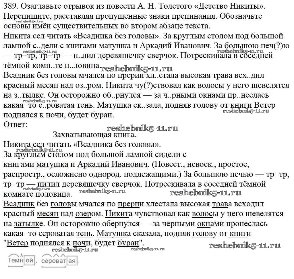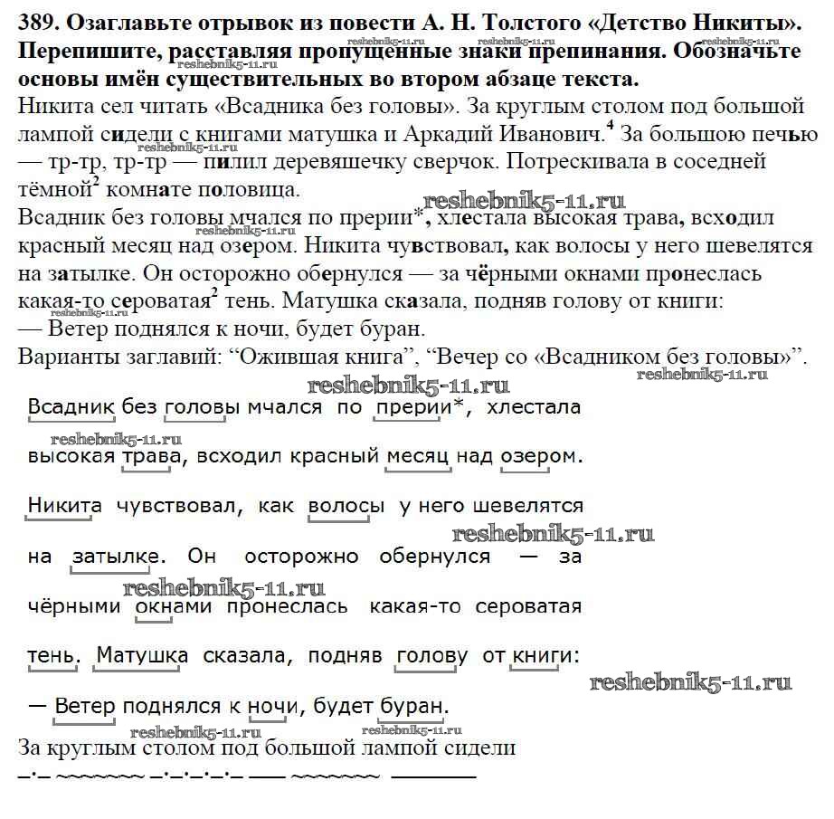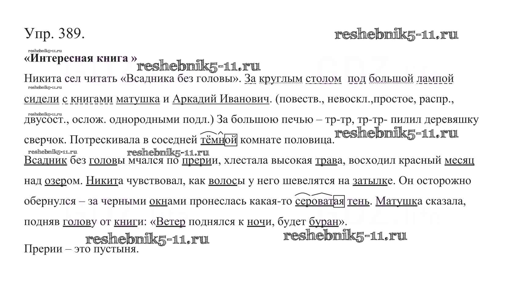 Готовая домашняя работа с ответами по Русскому языку за 5 класс Баранов, Ладыженская, Тростенцова, Кулибаба, Григорян Учебник Часть 1, 2 Просвещение 2016 ФГОС - Часть 2. Упражнения 389